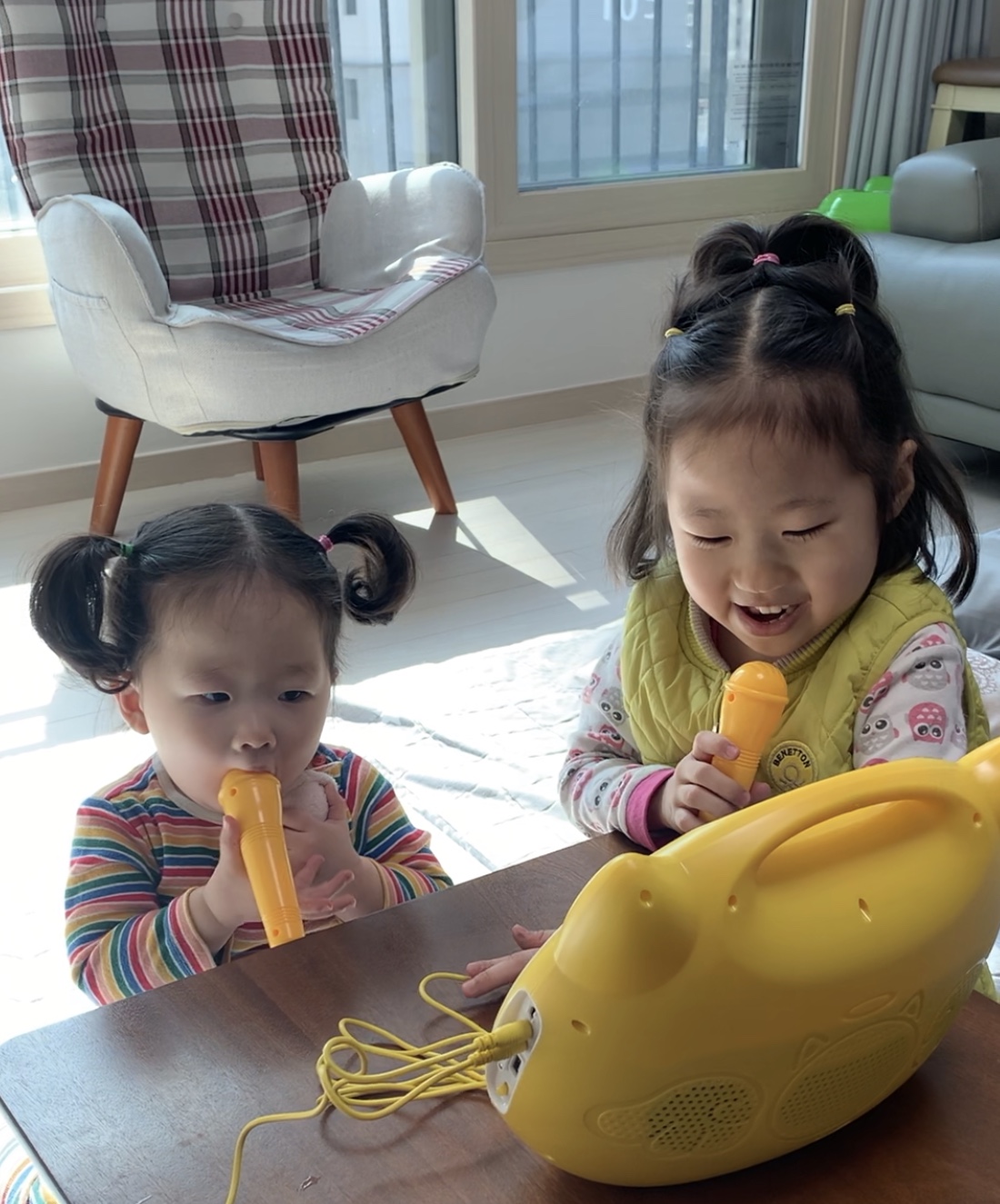 7살 통통이와 이제 3살(18개월) 봉봉이 모두 아주 좋아한다. 마이크가 두개라 너무 다행스럽다.