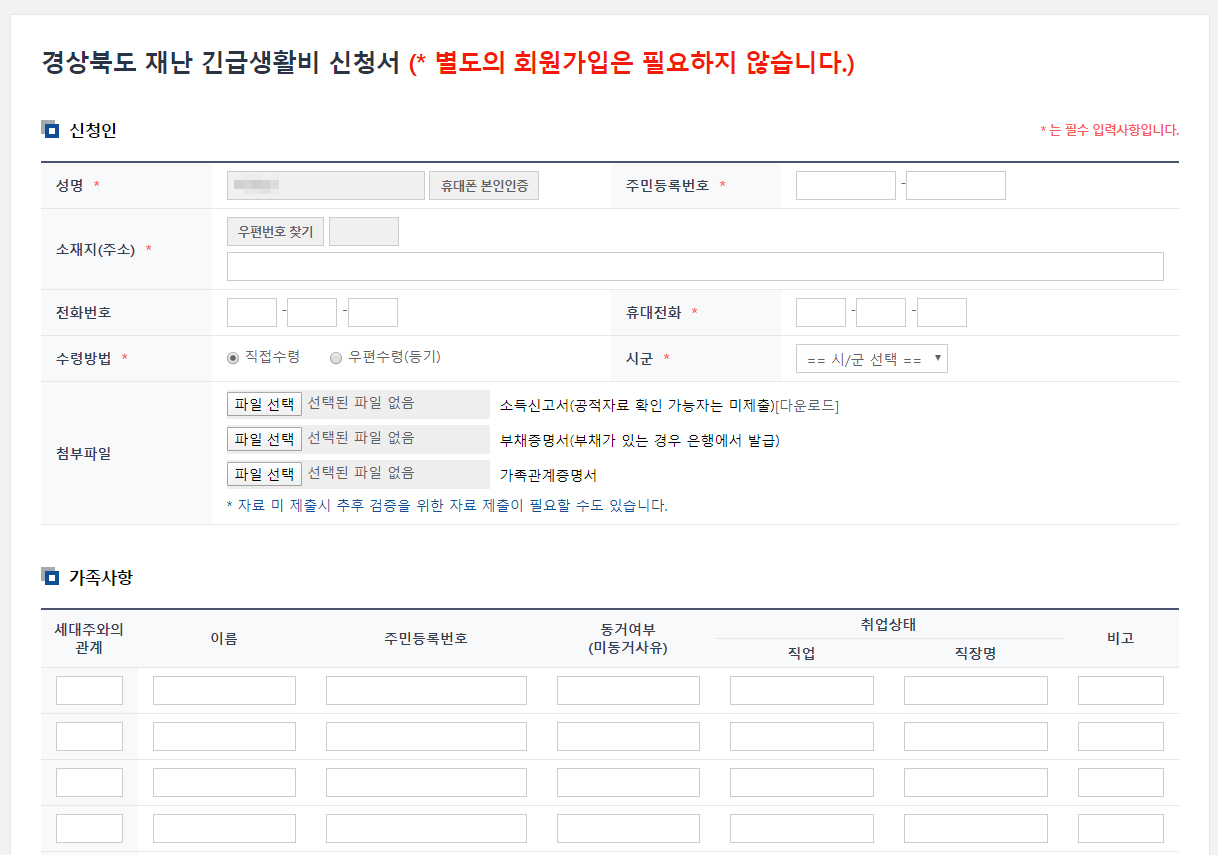소득신고서, 부채증명서, 가족관계증명서는 미 제출시 추후 검증을 위해 제출이 필요할 수도 있다.