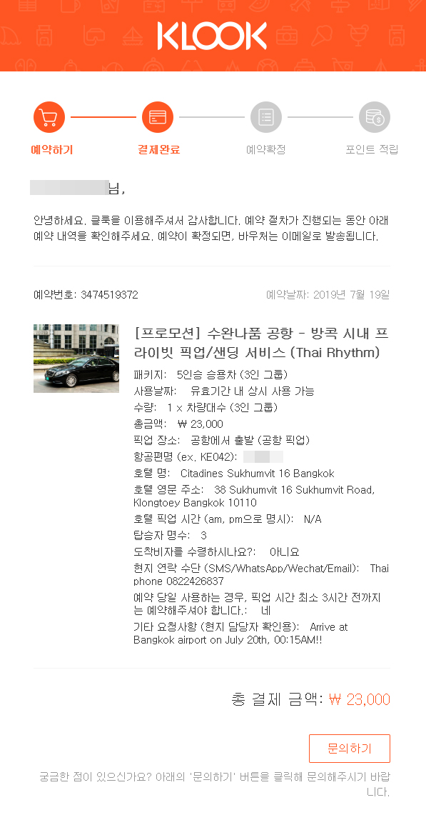 수완나품 공항에서 시다틴 스쿰빗16 방콕까지 미리 예약해 두었던 Klook클룩을 이용하였다.