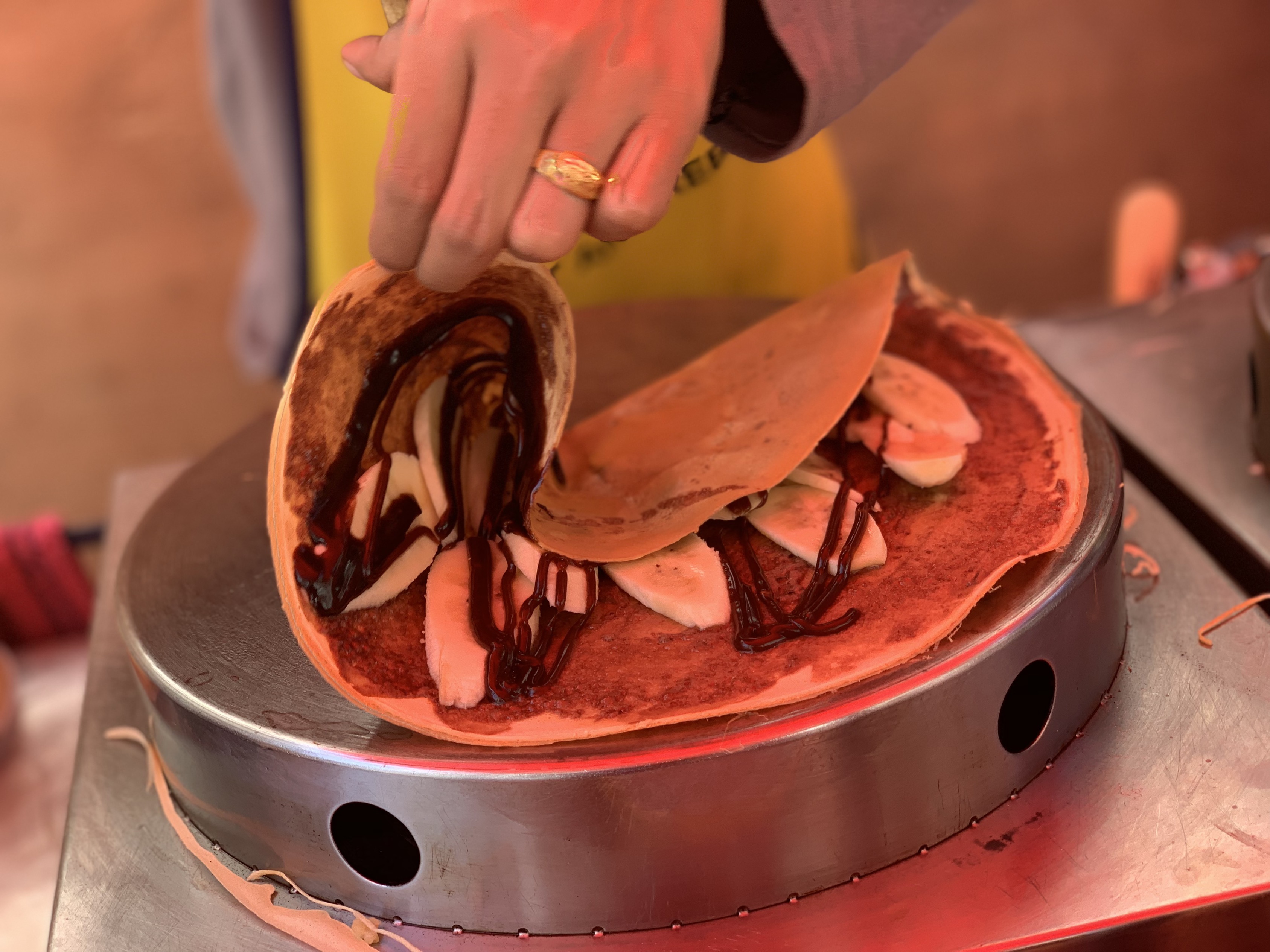 그리고 바나나와 쵸코가 들어간 파르페. 굽는 걸 구경하며 먹으니 더욱 맛있었다.