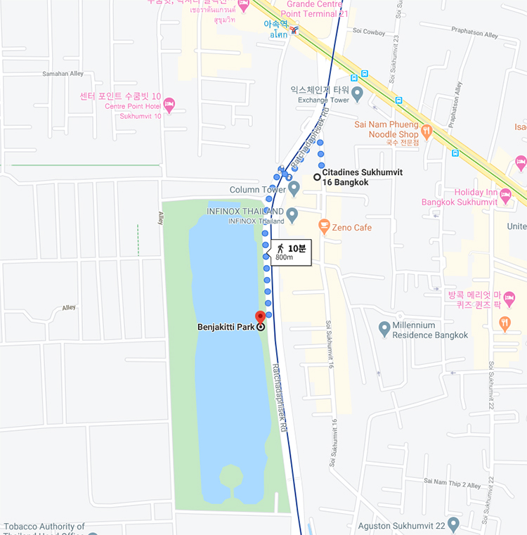 우리 숙소 시타딘 수쿰빗 16 방콕에서 벤자키티 공원까지 걸어서 10분거리.