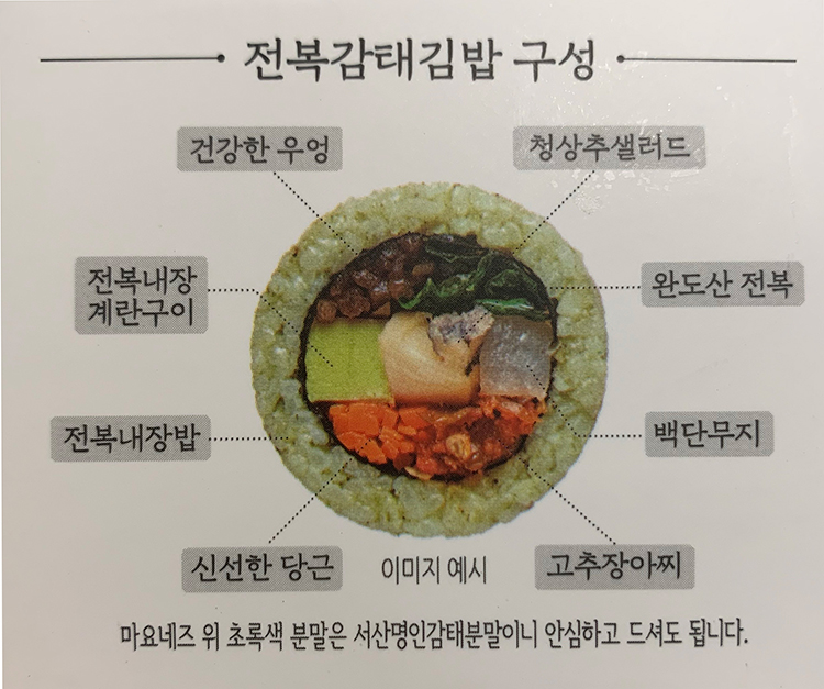 사실 이날 주제는 전복이였던걸로 알고 있는데 이 김밥은 정말 감태가 신의 한수인것 같다.