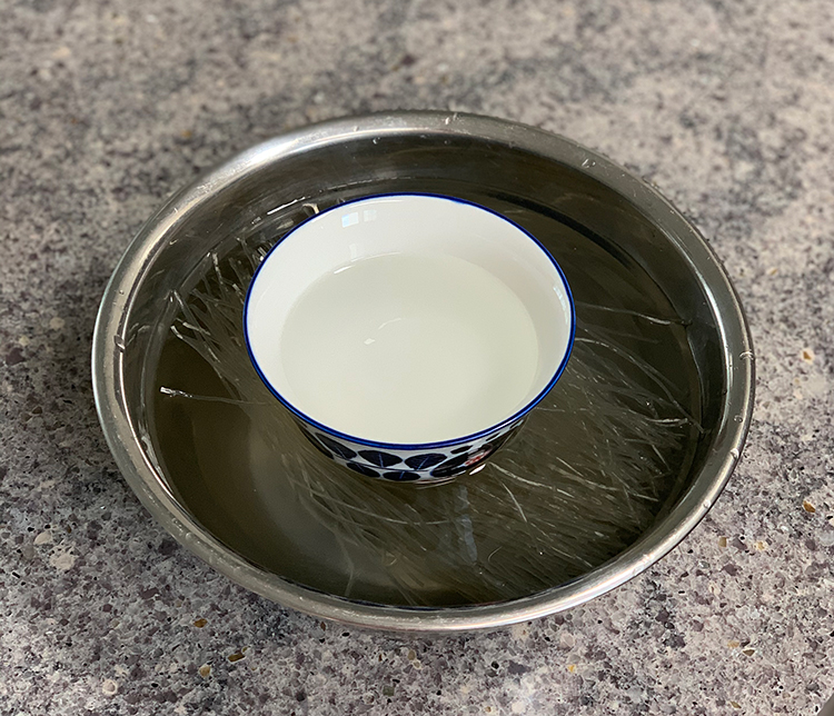 찜닭에 들어갈 당면을 불려준다. 당면이 물에 푹 잠길 수 있도록 밥그릇으로 눌러주었다.
