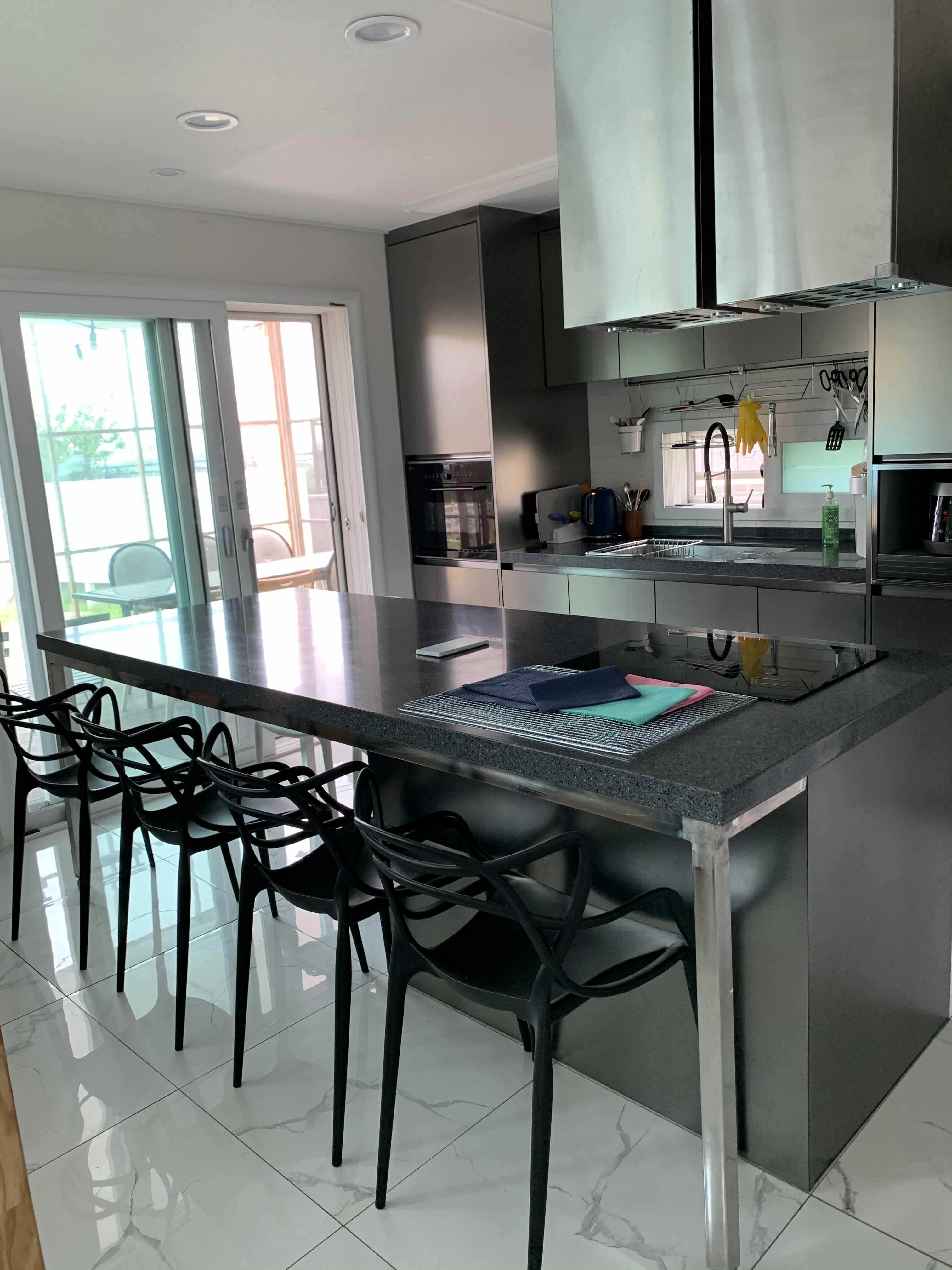 식탁겸 조리대에는 하이라이트가 설치되어 있다.