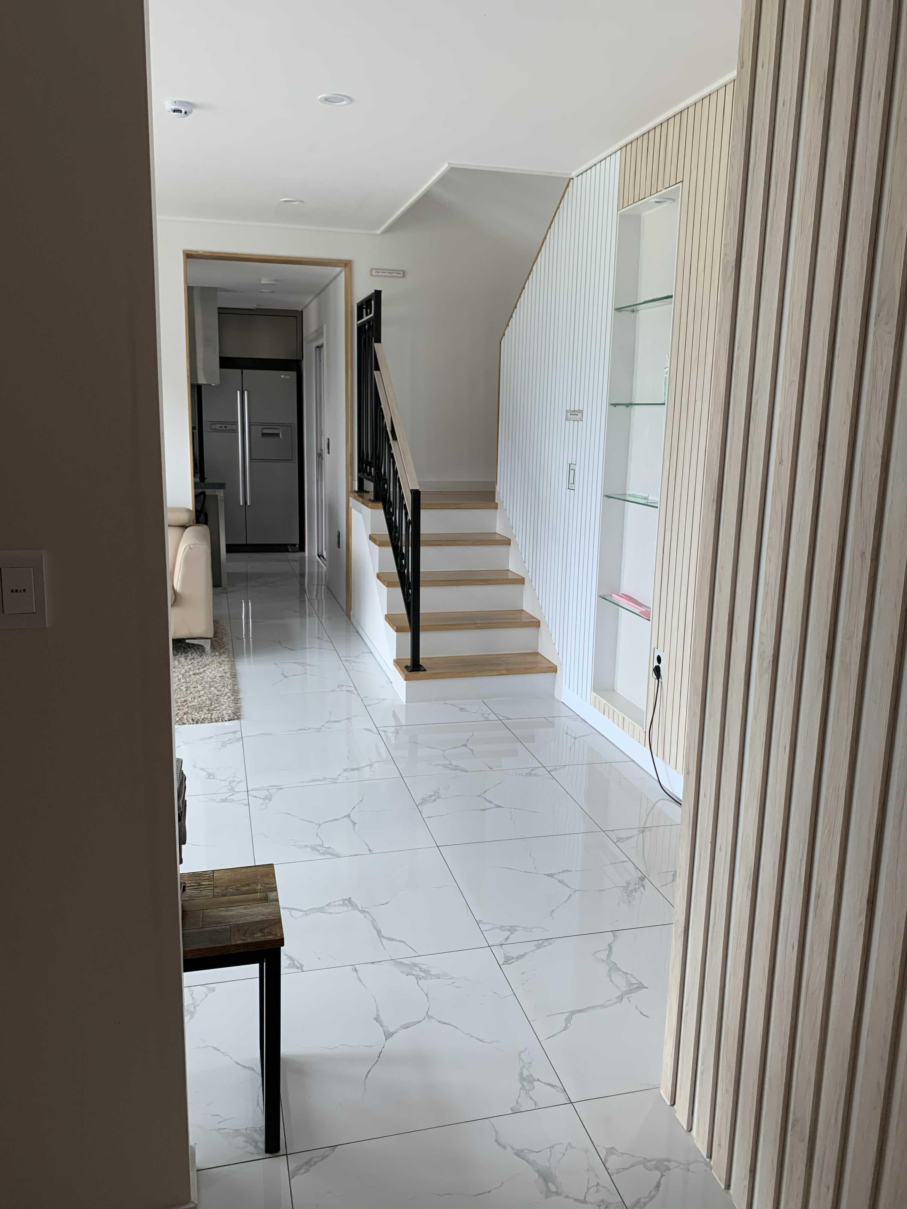 폴리싱타일 바닥에 층고가 높아 아주 시원한 느낌의 거실이다.