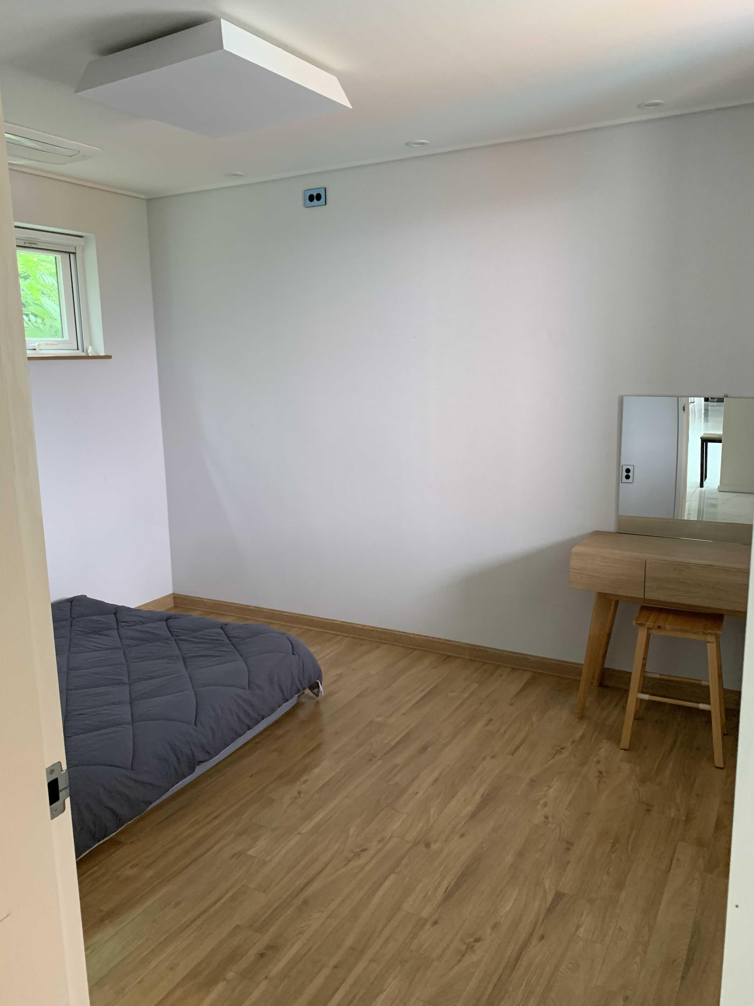 아래층과 같이 단이 낮은 침대가 놓여 있고 화장대가 비치되어 있다.