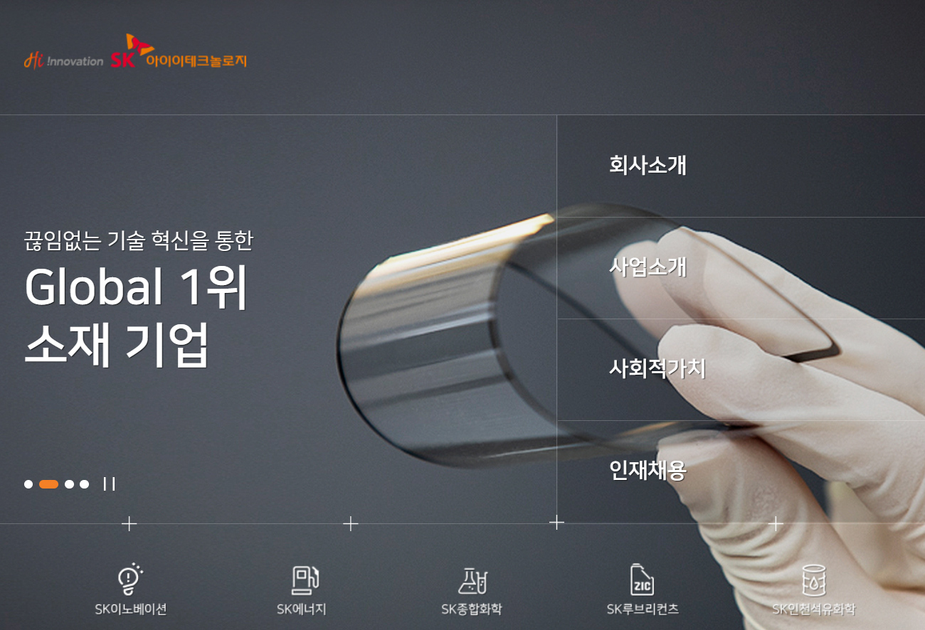 SK아이이테크놀로지는 50여 년간 축적해 온 화학기술과 최첨단 나노 테크놀로지를 적용하여 국내 최초이자 세계 세 번째로 리튬이온 전지의 핵심부품인 분리막을 독자 개발하였습니다.