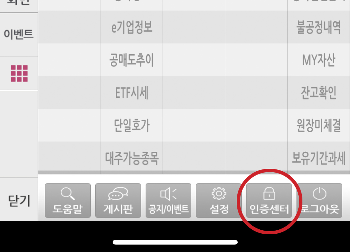 하단메뉴바에서 인증센터를 클릭한다.