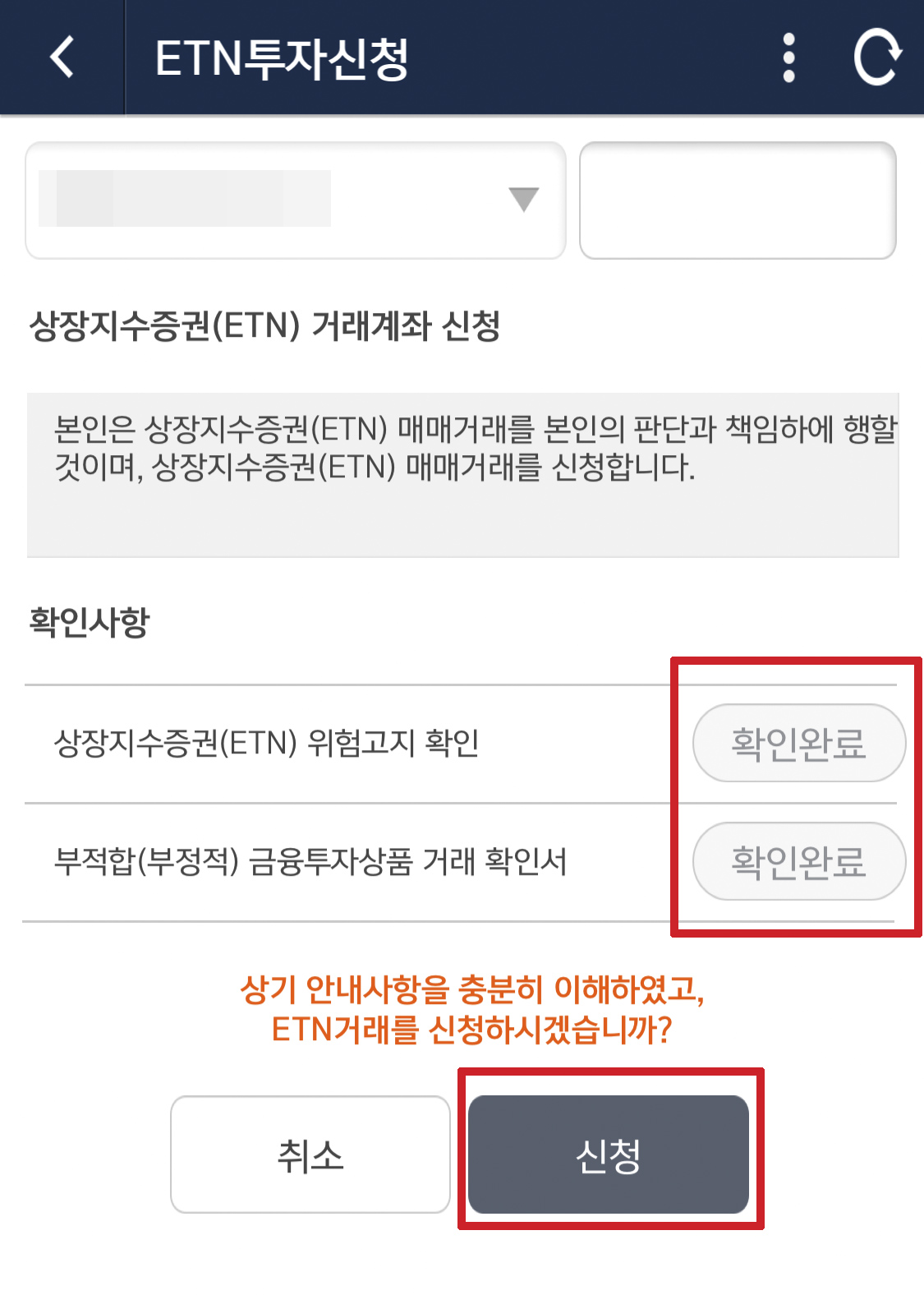 이것으로 ETN투자신청이 완료되었다.