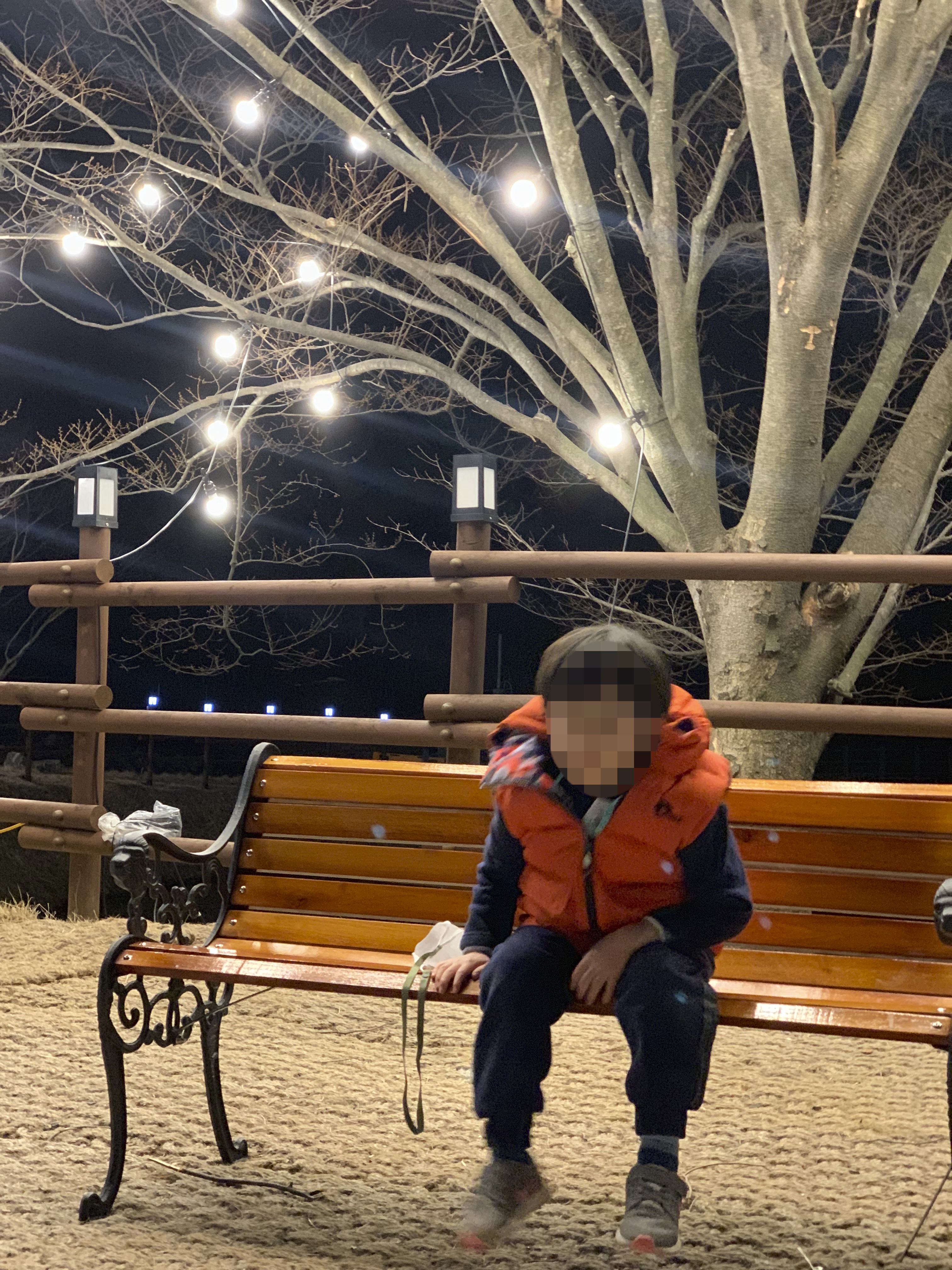 나무에 전등으로 인해 밤이 어둡지 않으니 밥먹다가도 퀵보드 타러 나왔다가....들어갔다가.....아주 신이 나셨다.