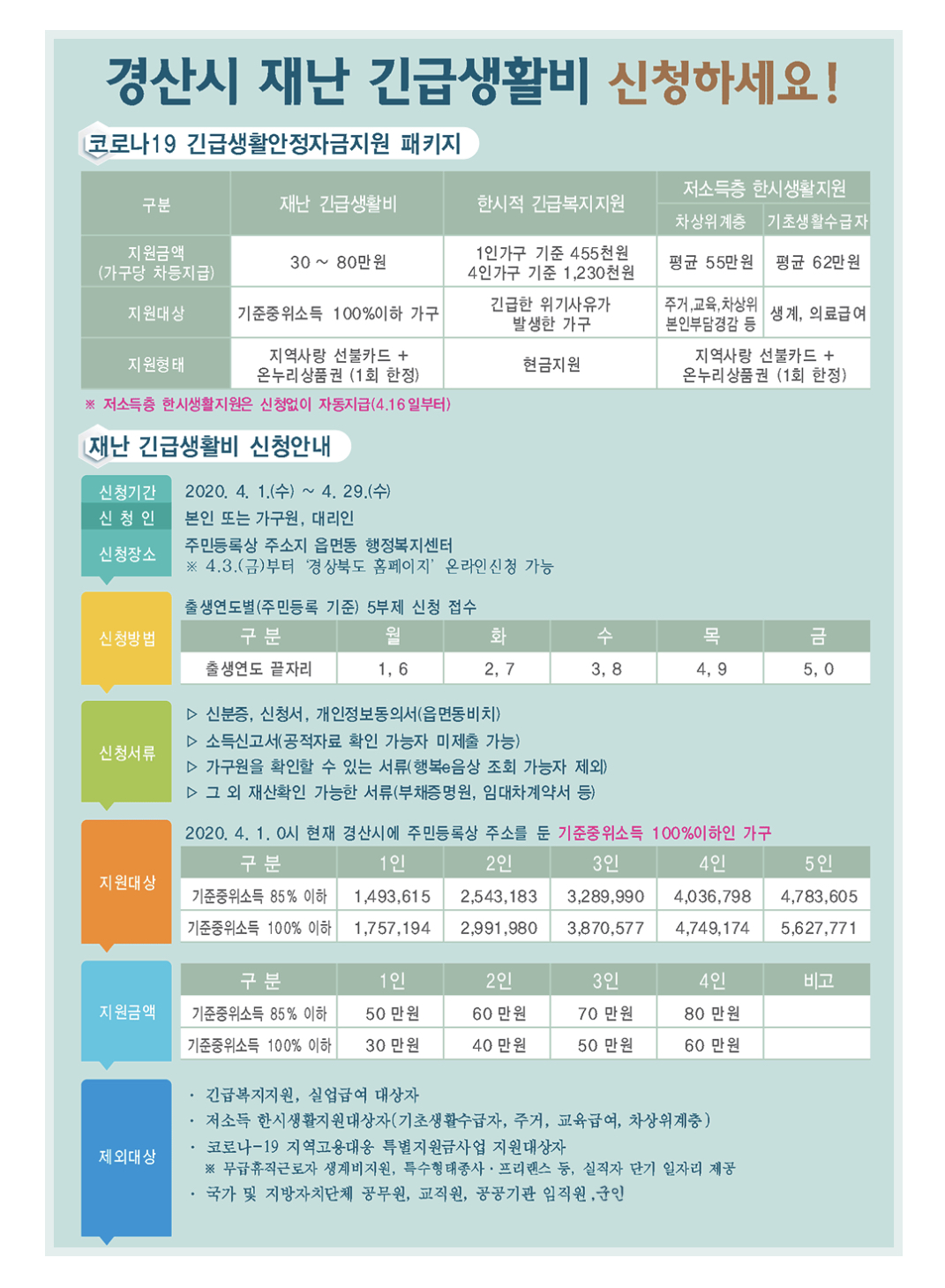 재난 긴급생활비는 기간내에 신청만 하면 유자격자는 모두 지원받을 수 있다.