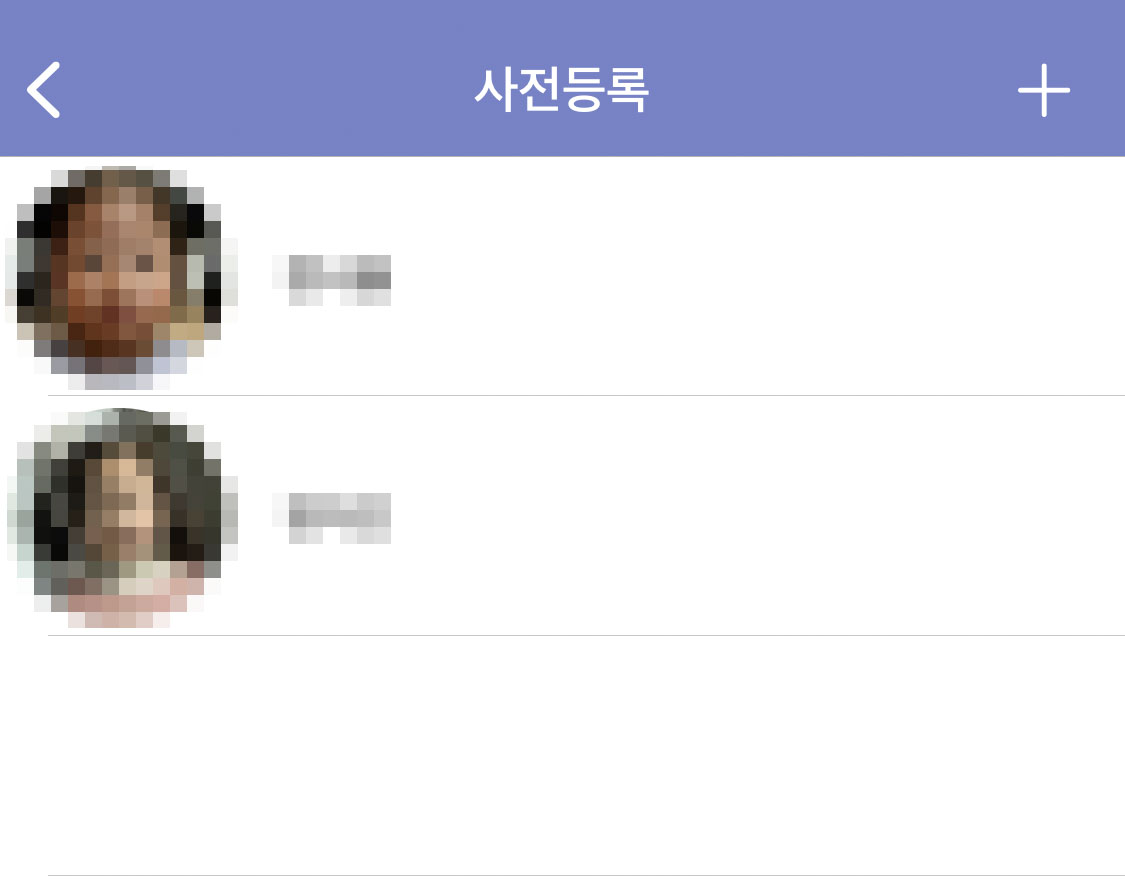 만약, 신규등록이나 둘째 아이 추가를 위해서는 오른쪽 상단의 "+" 버튼을 눌러주면 된다.