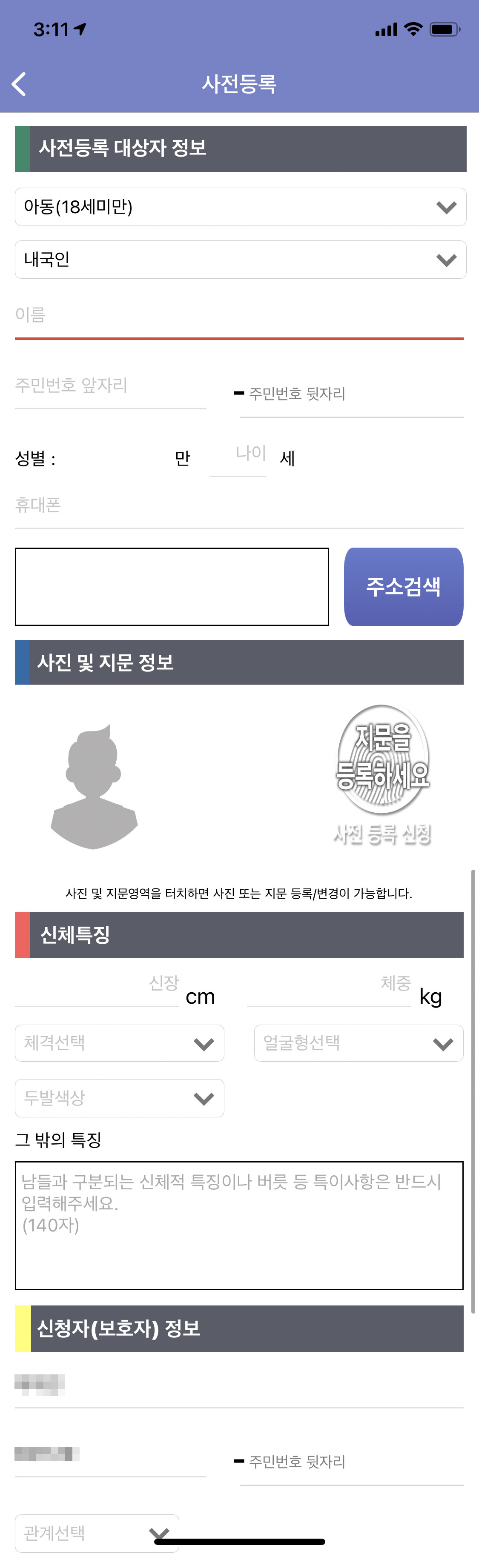 ※ 3세 미만 아동의 경우 지문 융선의 미발달과 움직임으로 지문 촬영이 어려우실 수 있습니다.