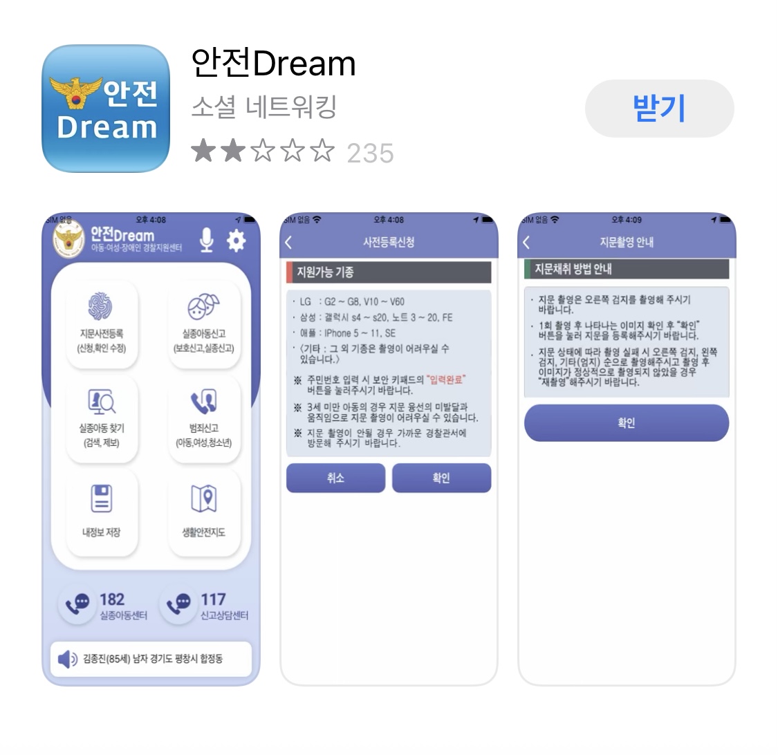 몇 해 전 통통이가 어린이집을 다닌 던 시절 미아방지를 위해 경찰서에서 나와 지문등록을 한다고 했었다. 예전에는 경찰서에 어린이집을 직접 방문해서 등록이 가능한 걸로 알고 있었는데, 이제는 안전 Dream 앱을 통해서 휴대폰으로 등록이 가능하다고 한다.