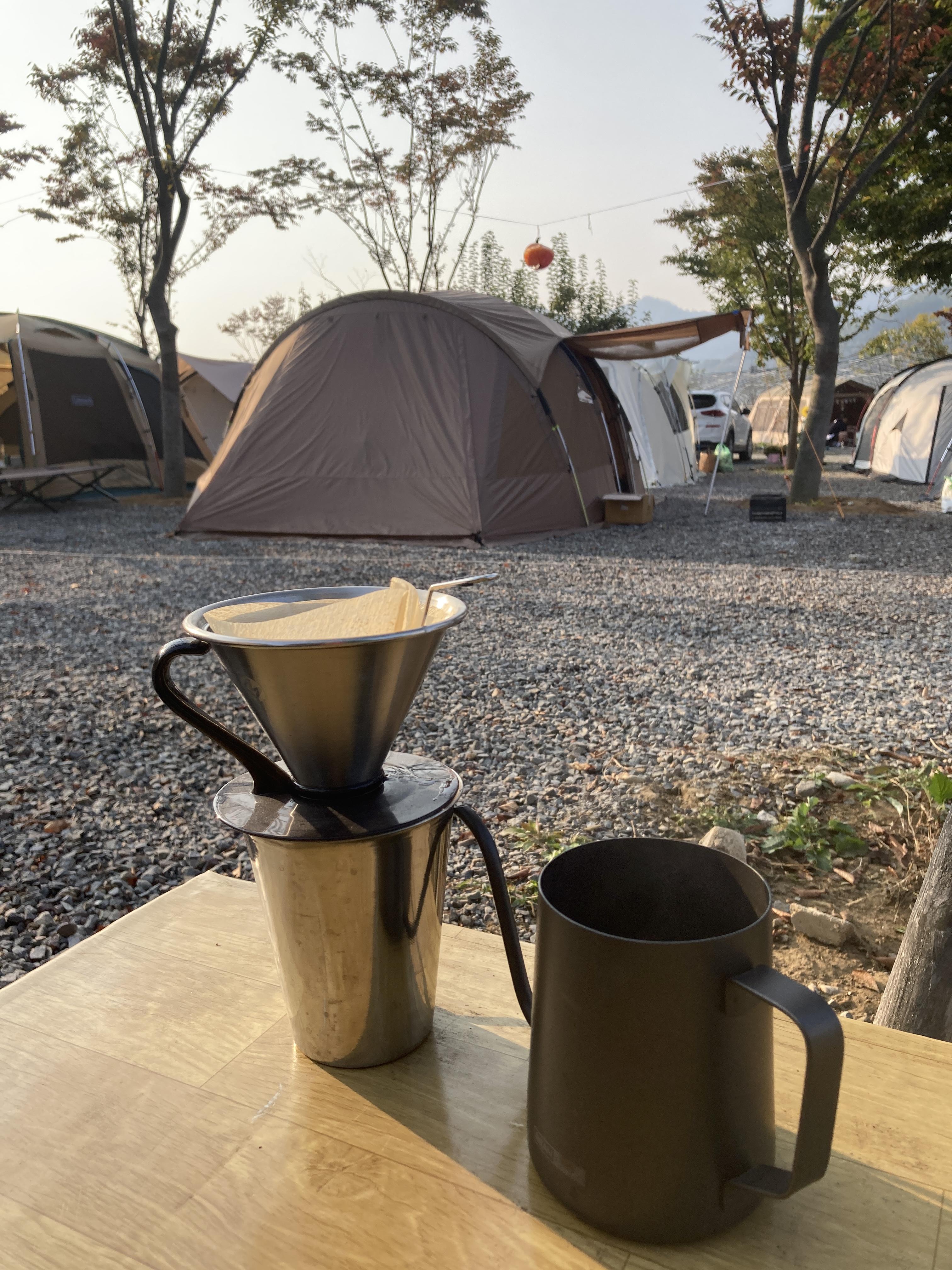 드립커피를 마시는 여유까지 즐기며, 아침은 라면과 스프로 간단히 해결했다.