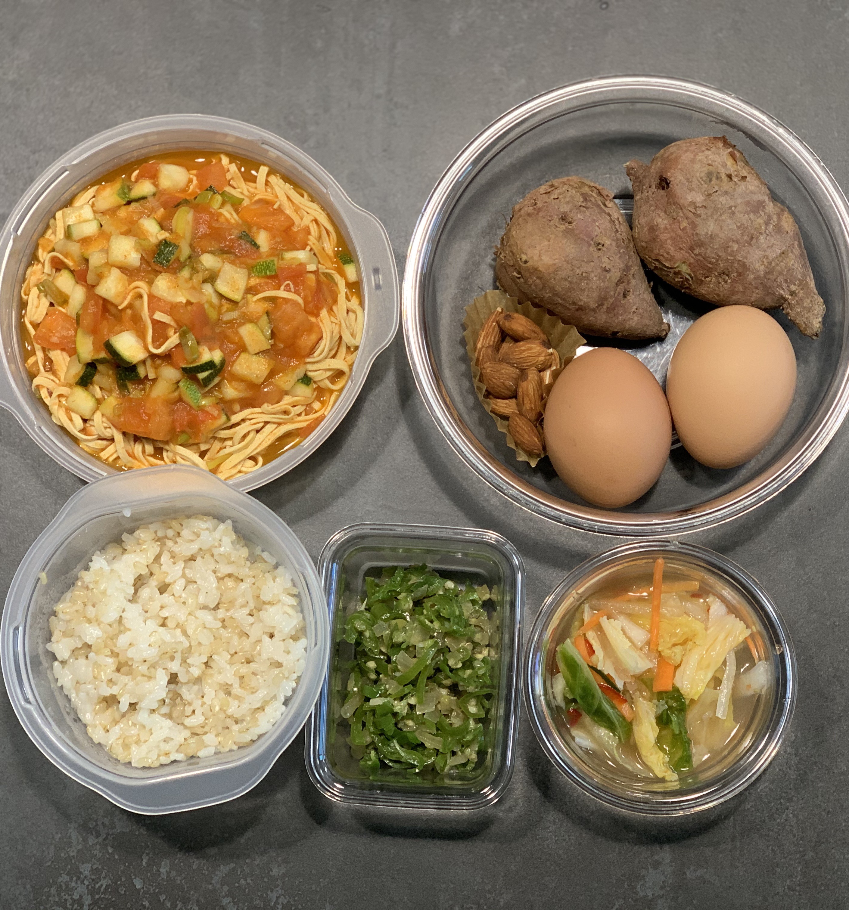고구마, 계란, 아몬드 - 두 끼분량의 도시락을 준비하다 보니 간식도 평소보다 두배의 양으로 담아 보았다.