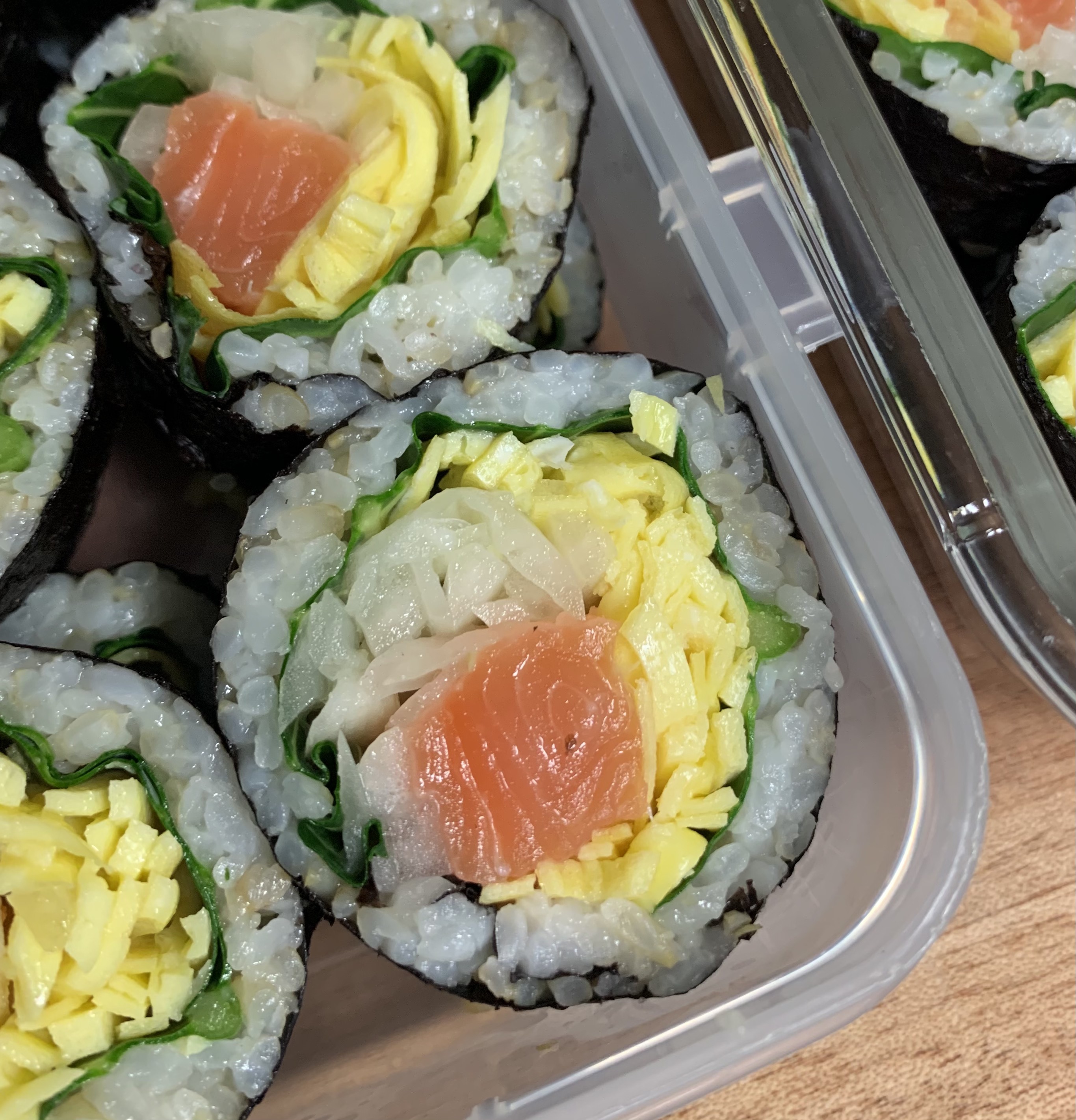 이번에는 양파초절임을 만들어 연어김밥을 말아 보았다.