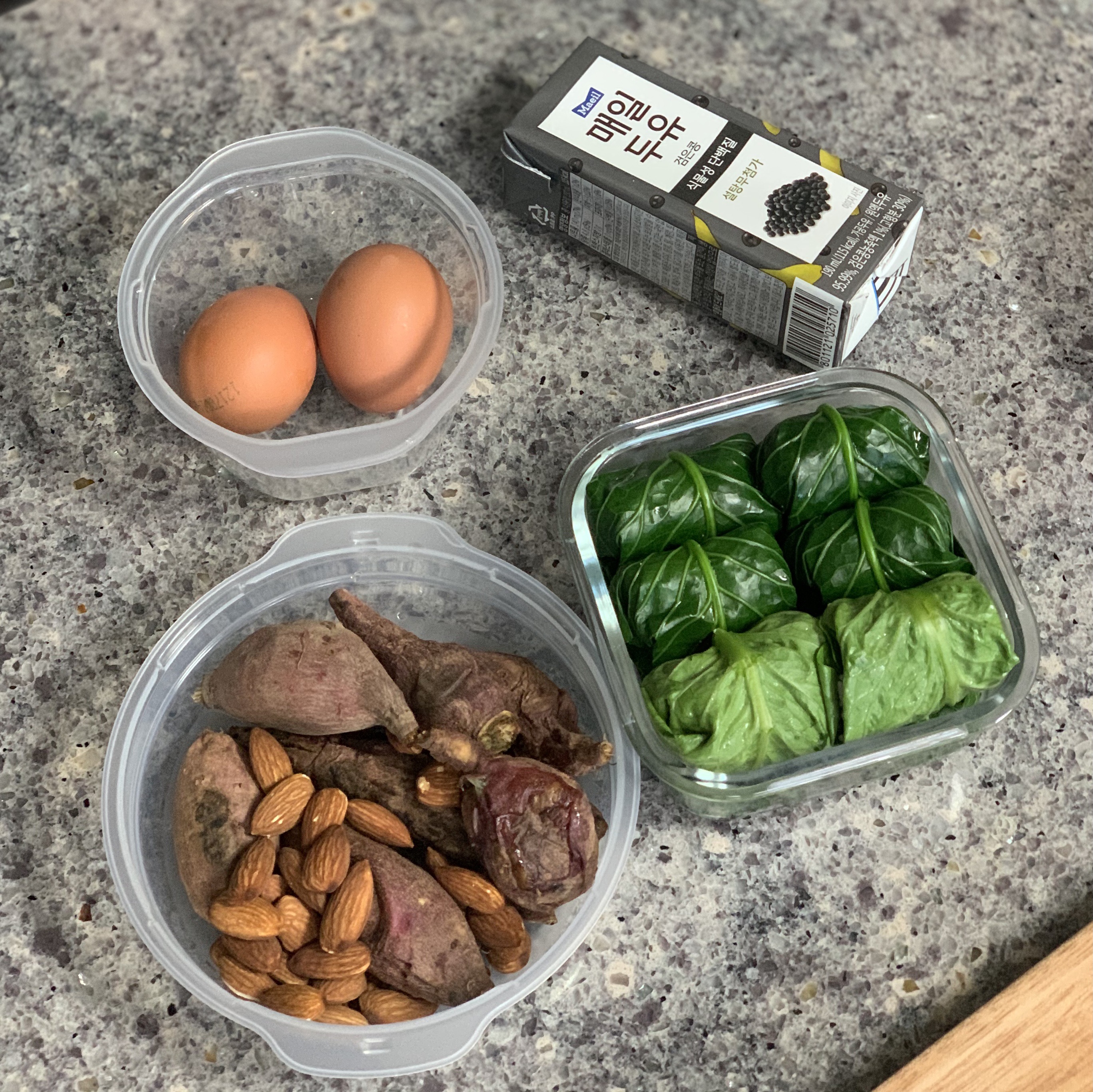오전·오후 간식 : 고구마 & 아몬드 & 삶은달걀 & 검은콩두유