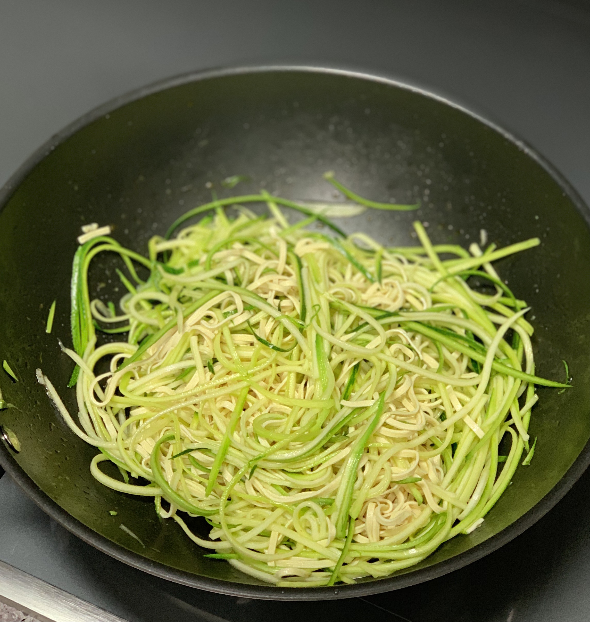 ⑤ 볶아진 소스에 면 두부와 쥬키니면을 넣고 소스가 골고루 섞일 수 있도록 살짝 볶아 준다.
