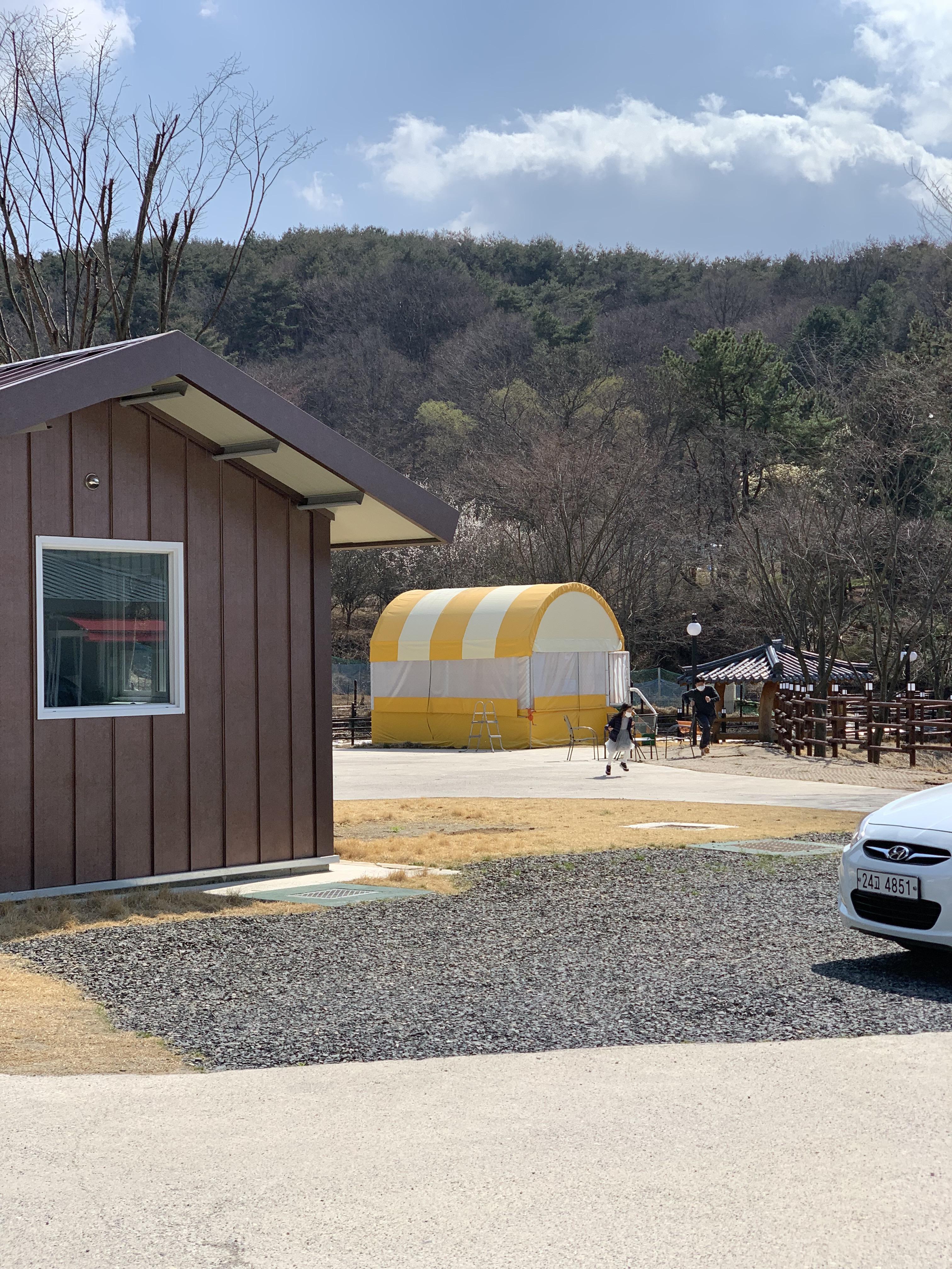우리가 예약한 곳은 염소자리 온돌형 카라반. 관리동 바로 옆에 있어서 외부의 공용화장실도 가까워 좋았다.
