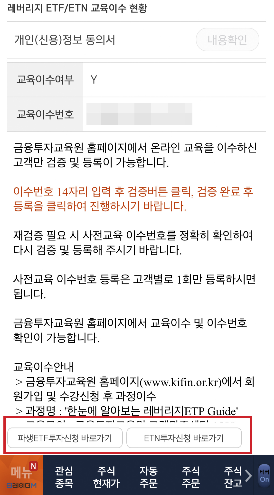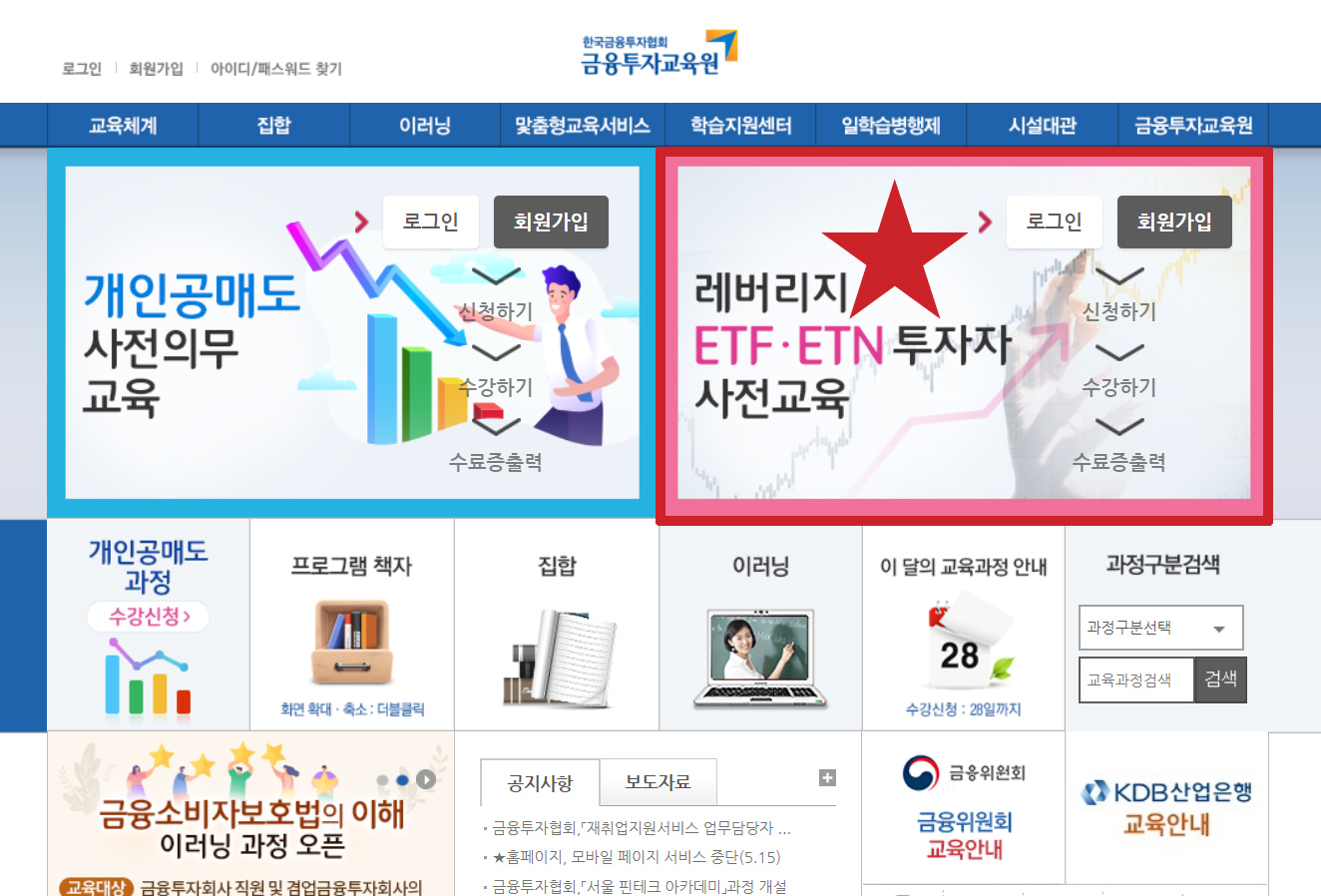 한국금융투자협회 금융투자교육원에 회원가입 후 레버리지 ETN.ETF 사전교육을 신청할 수 있다.