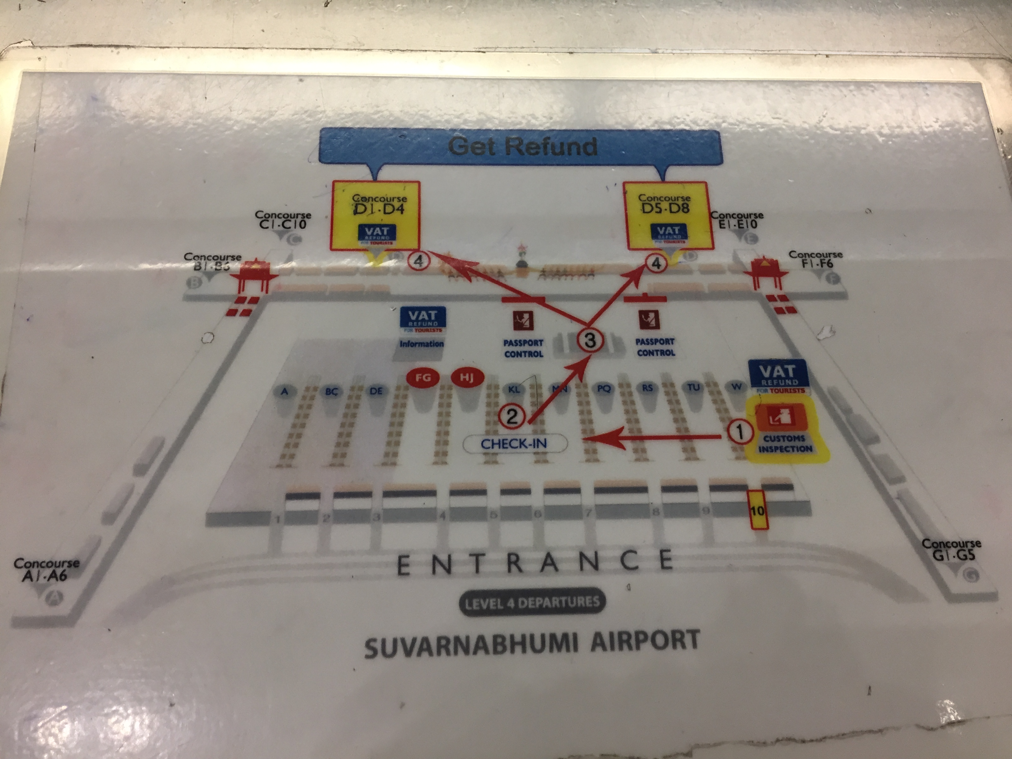 1. 도장받기 2. 체크인 3. 여권심사 4. 세금환급
