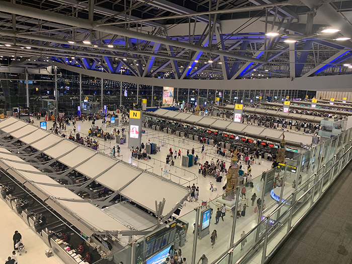 "수완나품 공항. 밤 비행기 승객들을 위한 편의시설이 조금 더 있었으면 하는 아쉬움이 남는다."
