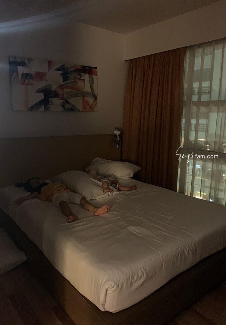 두 아이 모두 잠이 든 채로 호텔에 도착해서 그대로 잔다.ㅎㅎㅎ