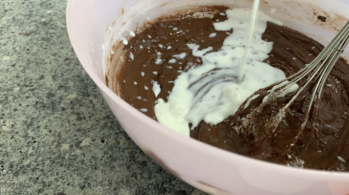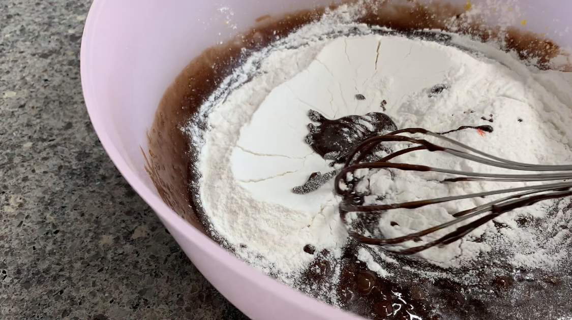 초콜렛을 먼저 풀어주고 찹쌀가루와 베이킹 파우더를 넣어 주었다.