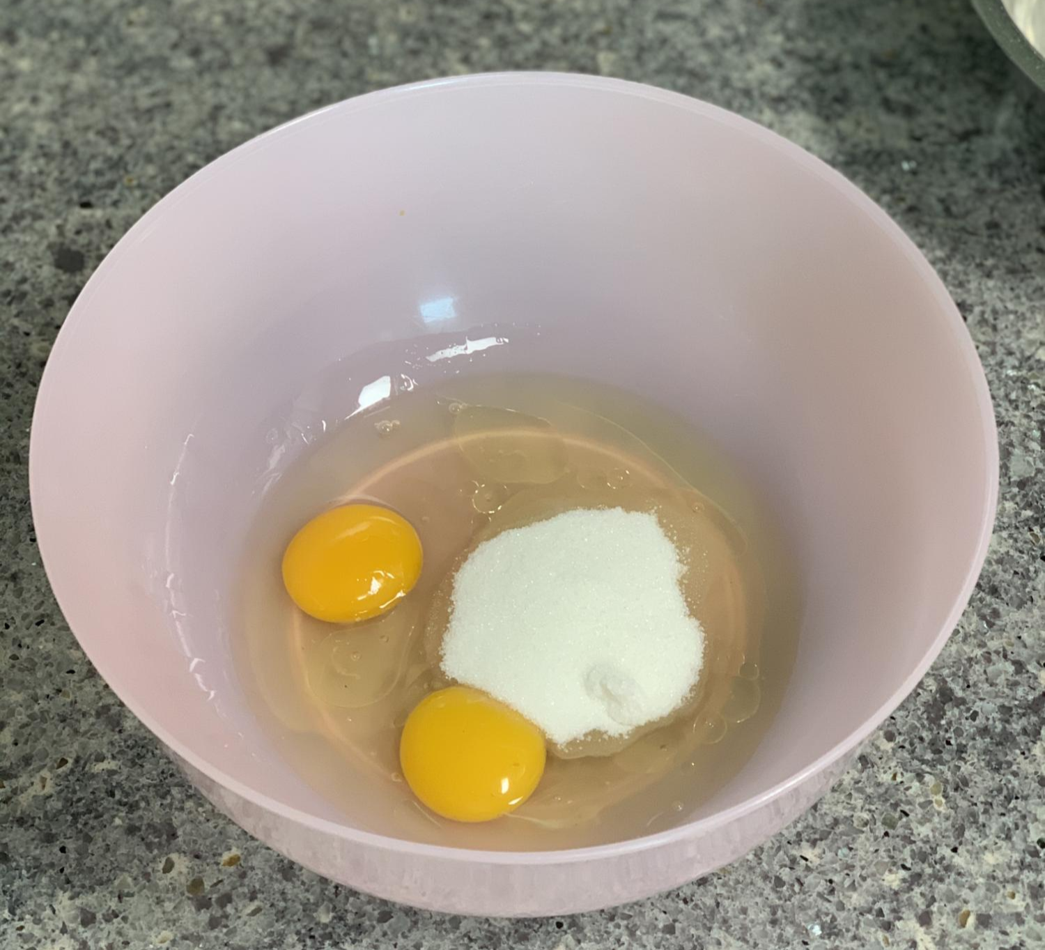 계란두개와 오일(포도씨유 오일사용)과 설탕을 먼저 믹싱볼에서 섞어주었다.