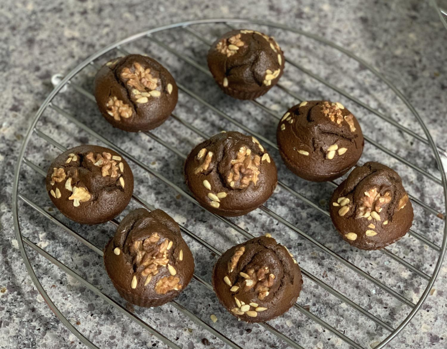 머핀틀에 구운 브라우니는 머리가 울퉁불퉁하다.