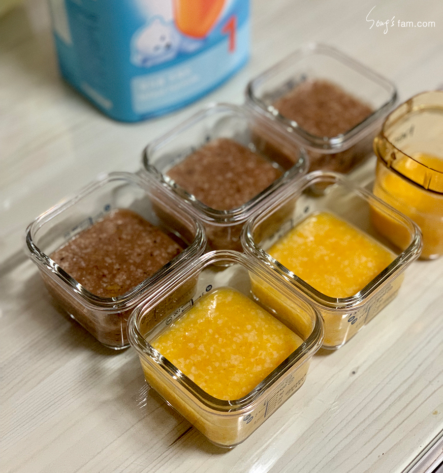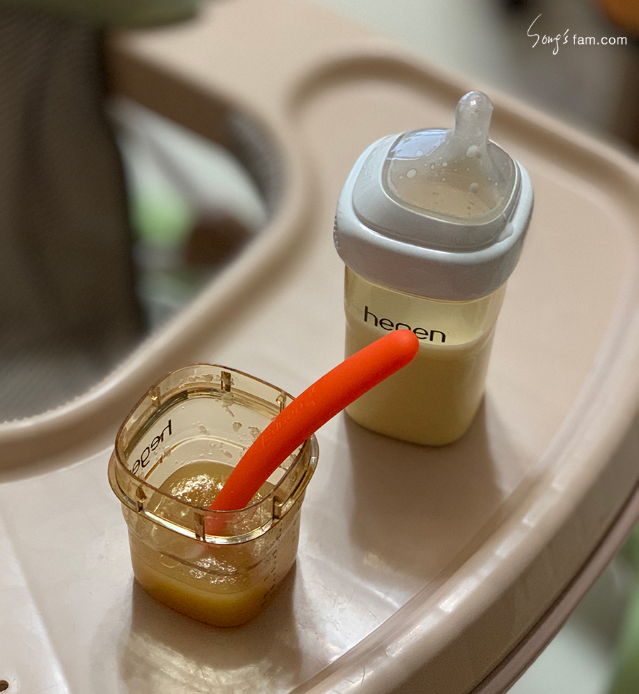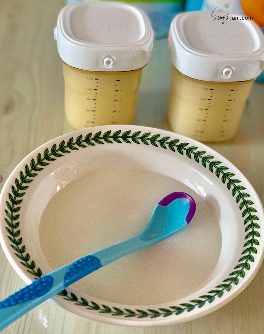 이 전에는 한포의 쌀가루를 이용하여 3끼를 준비하였다면 오늘 부터는 한포반으로 3끼의 이유식을 준비하였다.