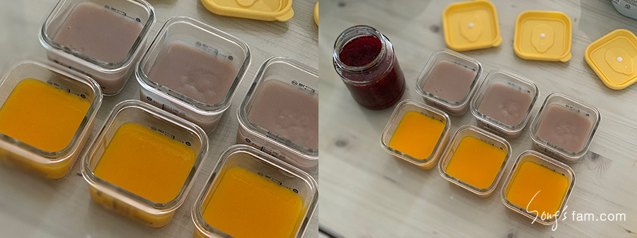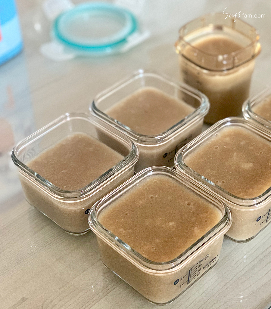 이 전에는 한포의 쌀가루를 이용하여 3끼를 준비하였다면 오늘 부터는 한포반으로 3끼의 이유식을 준비하였다.