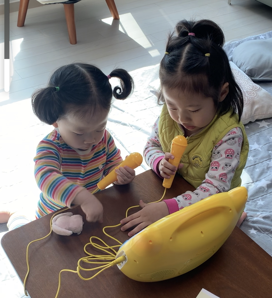 7살 통통이와 이제 3살(18개월) 봉봉이 모두 아주 좋아한다. 마이크가 두개라 너무 다행스럽다.