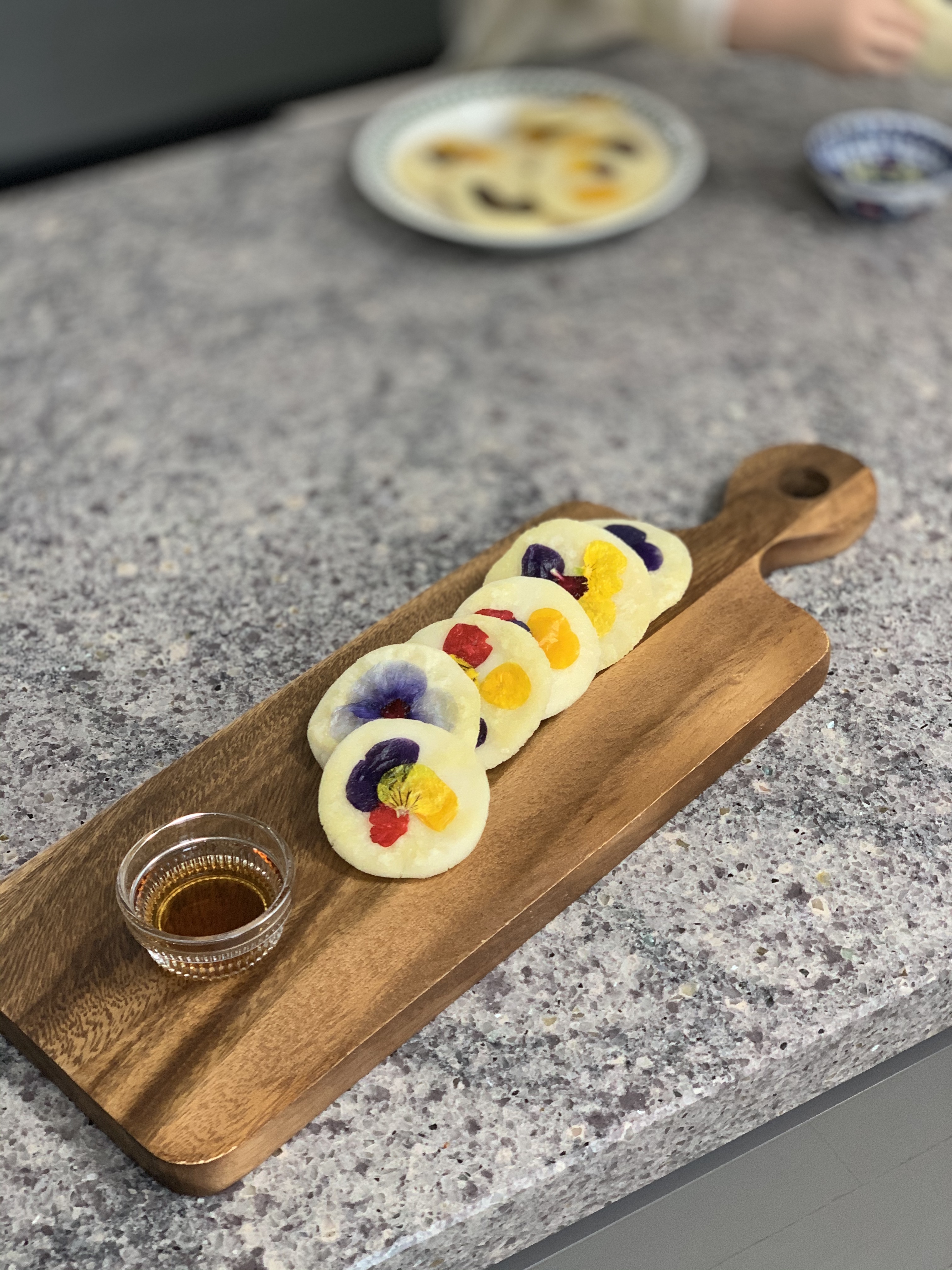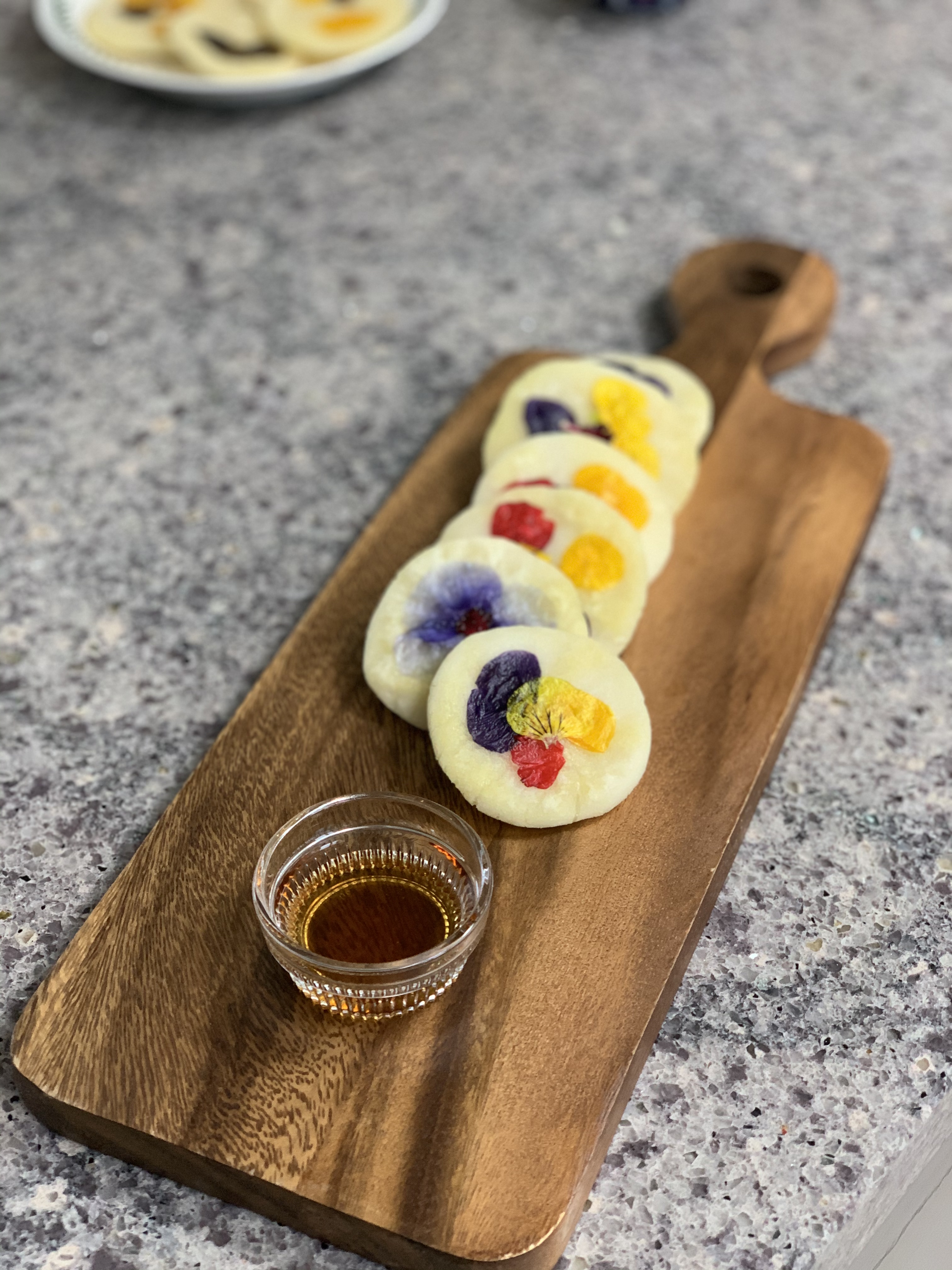 재료 : 찹쌀가루, 식용꽃, 소금, 꿀이나 시럽