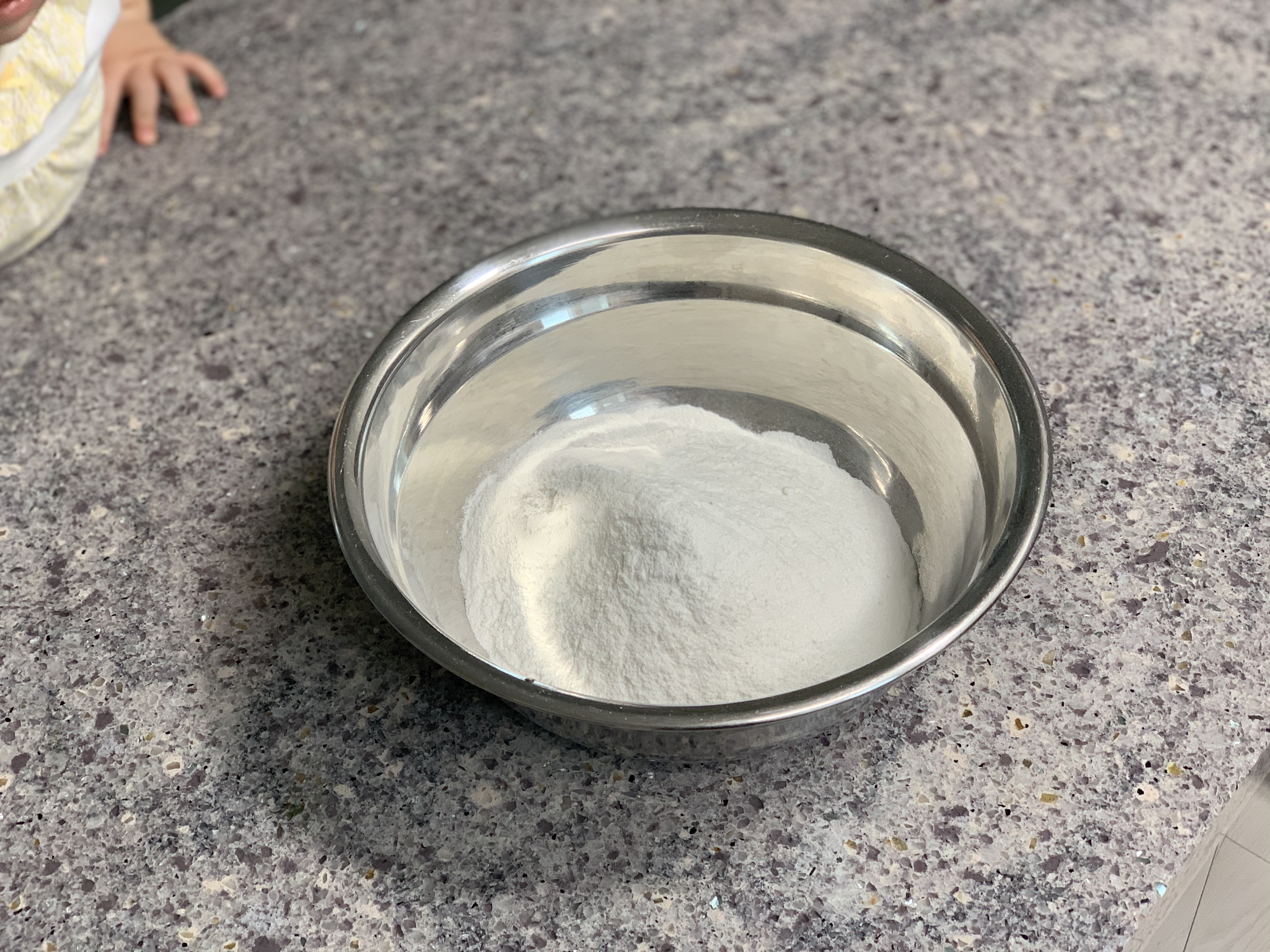 찹쌀가루에 소금을 한 꼬집 넣어 준다.
