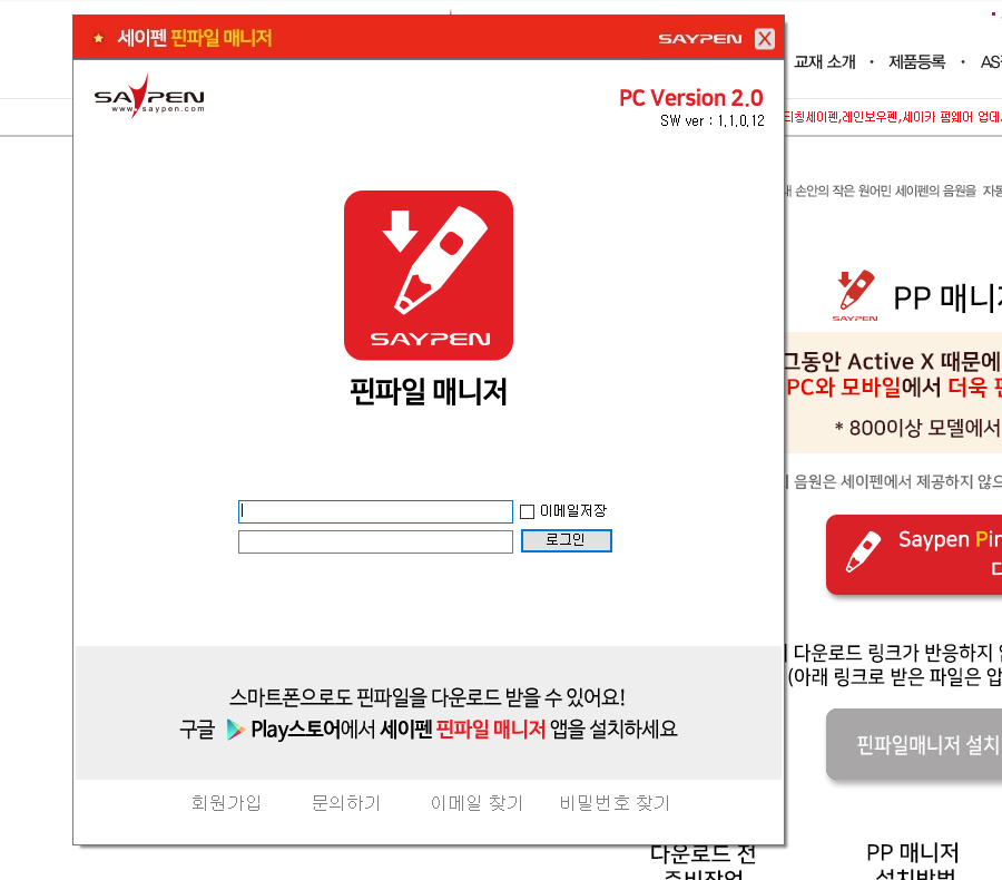 핀파일 로그인 후 세이펜을 연결해 준다.