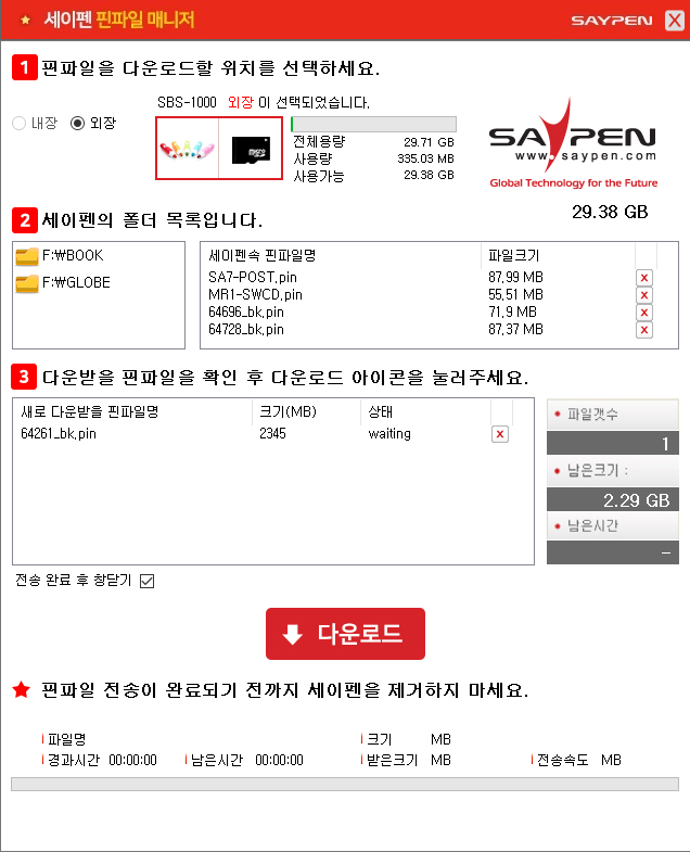 2. 세이펜 폴더는 F:\BOOK 폴더를 선택해 주었다.