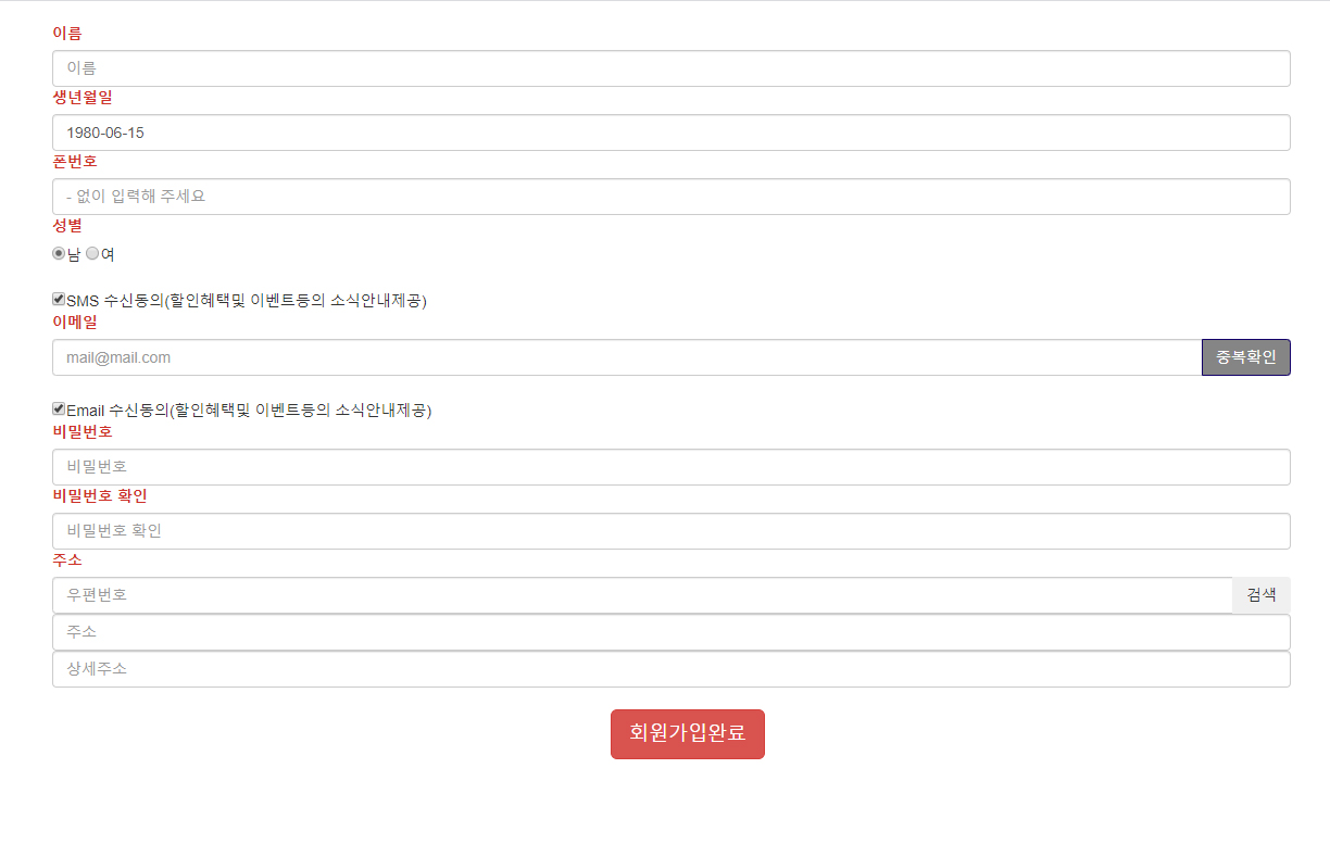 위의 정보를 입력하고 이메일은 중복확인 후 하단의 회원가입완료 버튼을 눌러준다.
