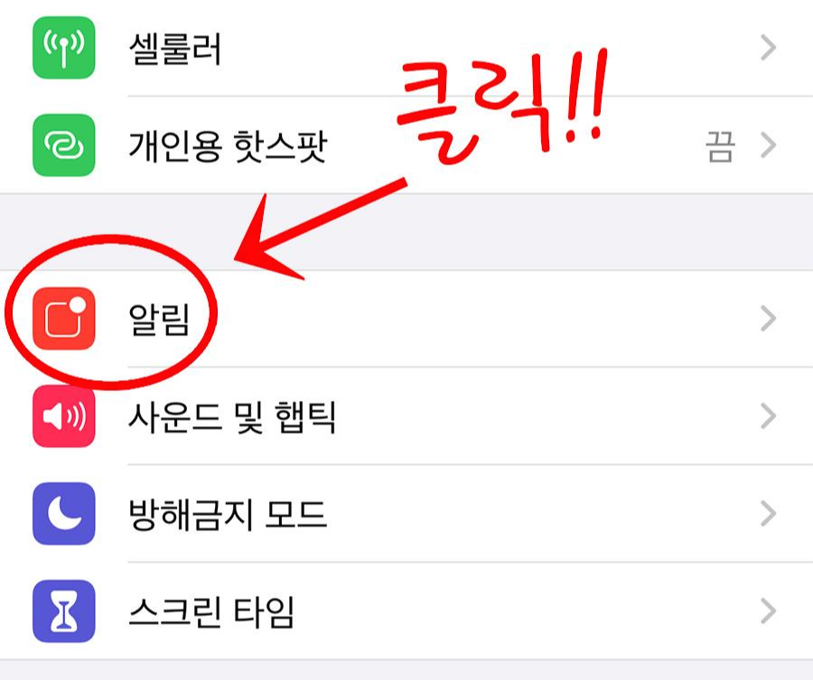 먼저, [설정]으로 들어가면 위의 그림과 같이 [알림] 버튼을 눌러준다.