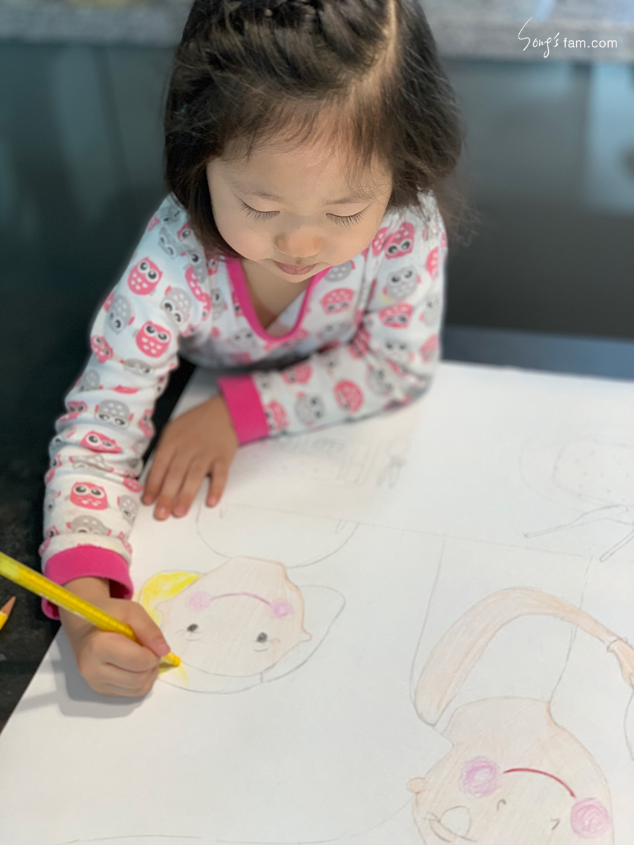 지난 주말 아빠와 봉봉이가 잠든사이 오랜만에 엄마랑 그림그리기를 하였다.