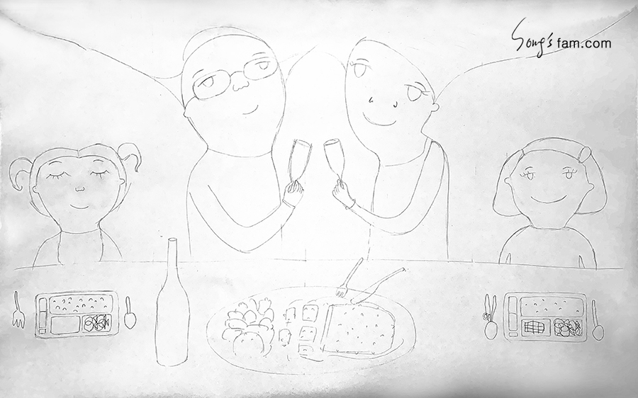 엄마 아빠가 들고 있는 잔은 와인이 아니라 사이다란다.^^;;