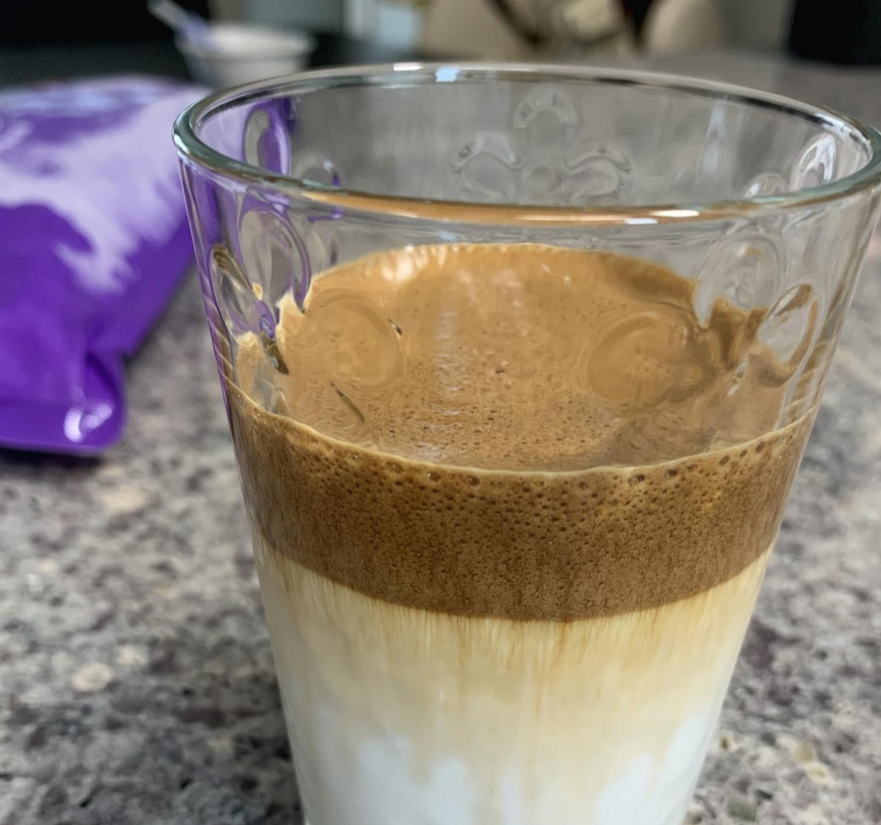 우유 위에 올려서 조금 시간이 지나니 거품이 가라앉으며 우유와 섞이기 시작합니다.