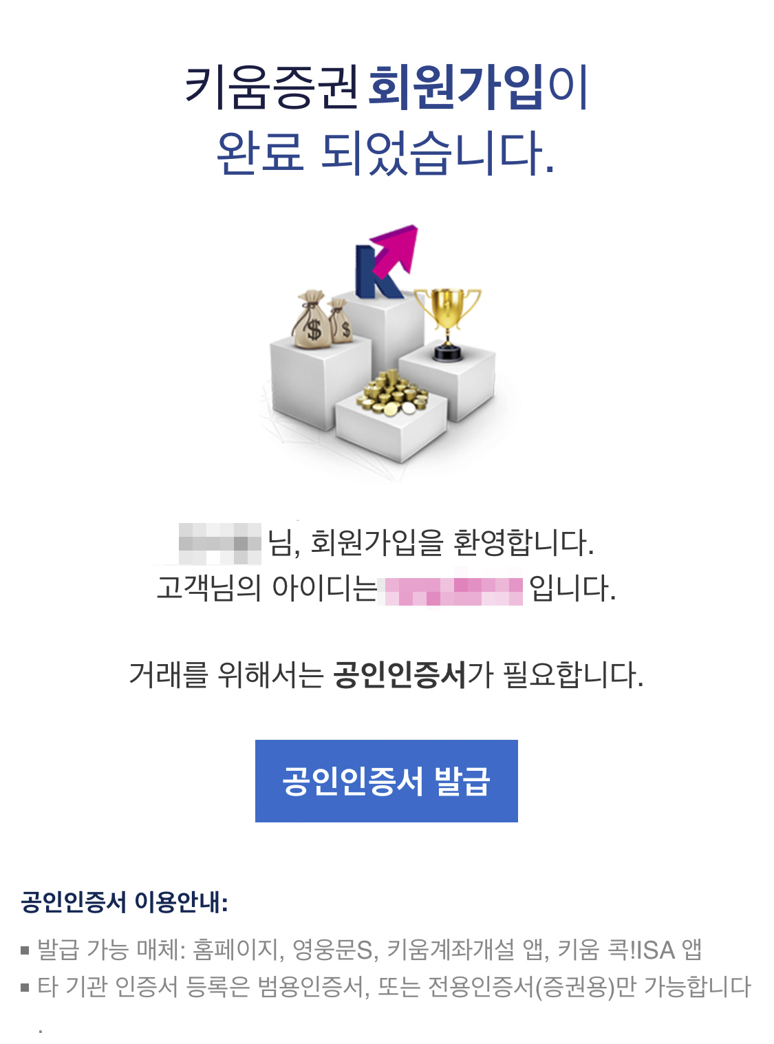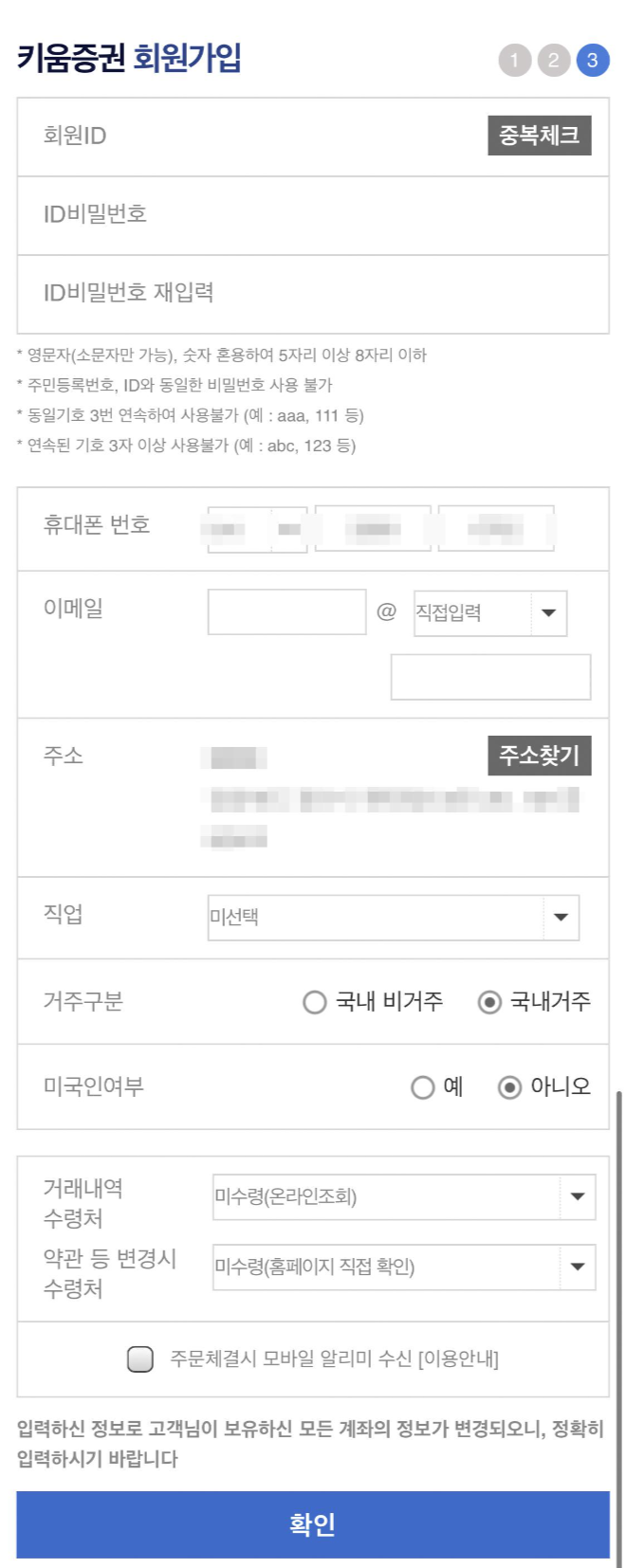 이렇게 키움증권 회원가입이 완료되었다.