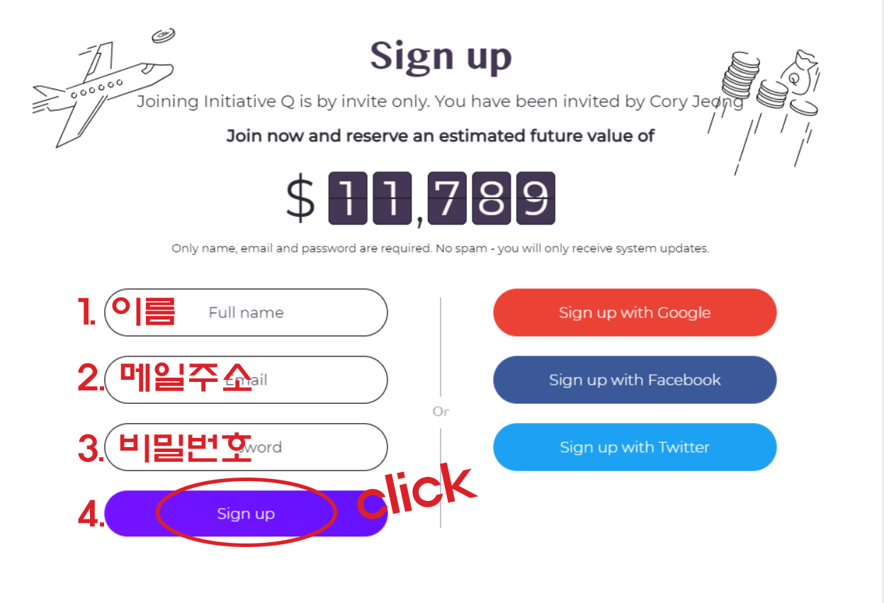 2. 가입하기 : 링크를 통해 들어오면 위와 같은 화면을 볼 수 있다.
