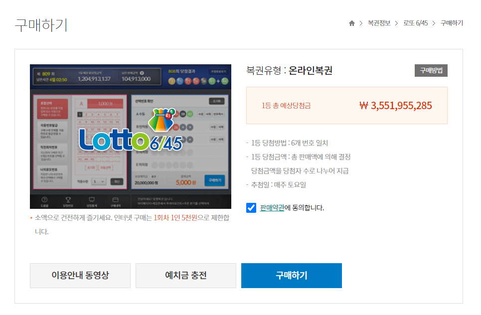 이후 내가 원하는 복권을 구매 할 수 있다.