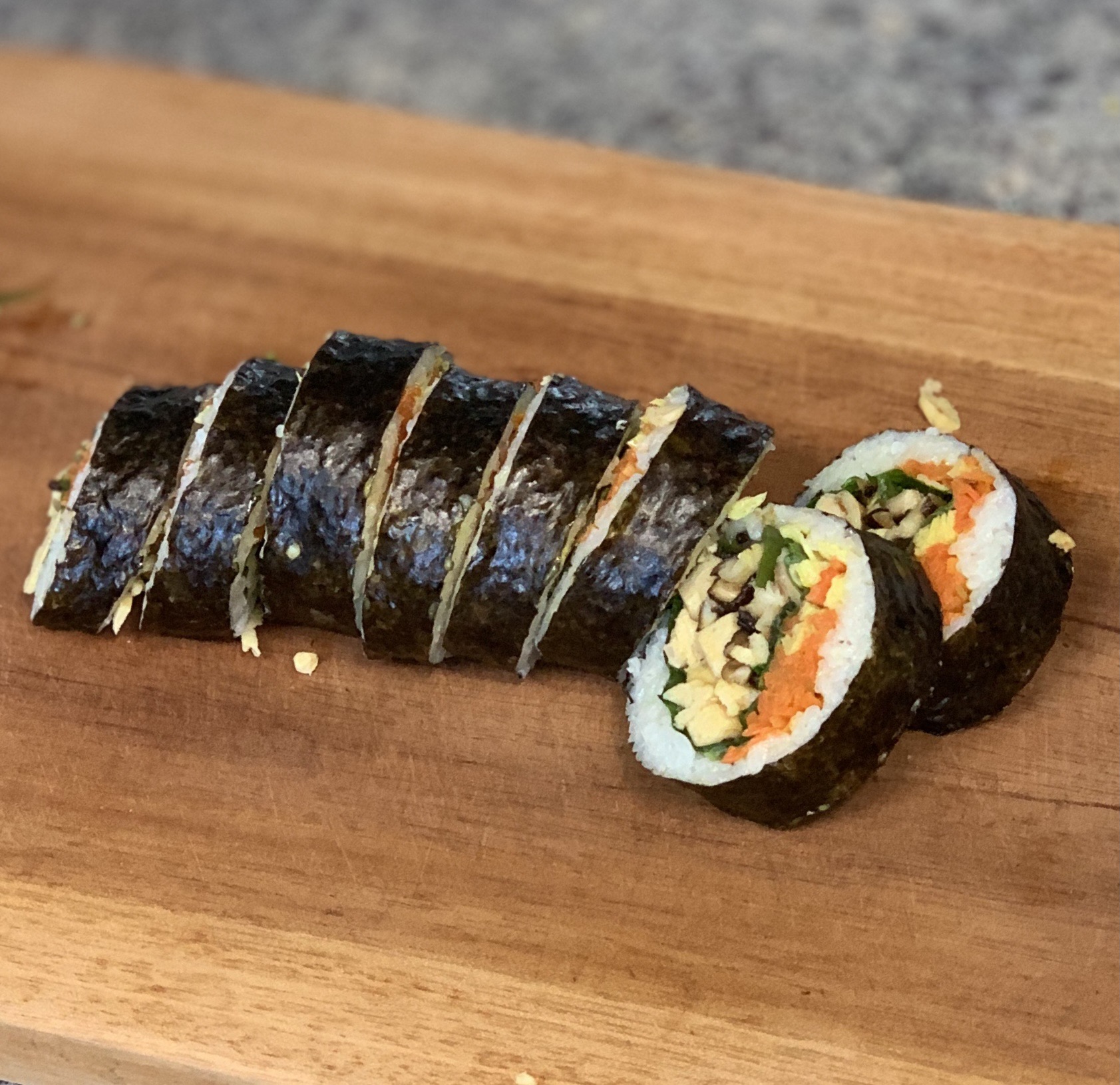 계란지단과 당근은 필수로 들어가고 다진 닭가슴살과 표고버섯을 넣어 김밥을 말아 보았다.