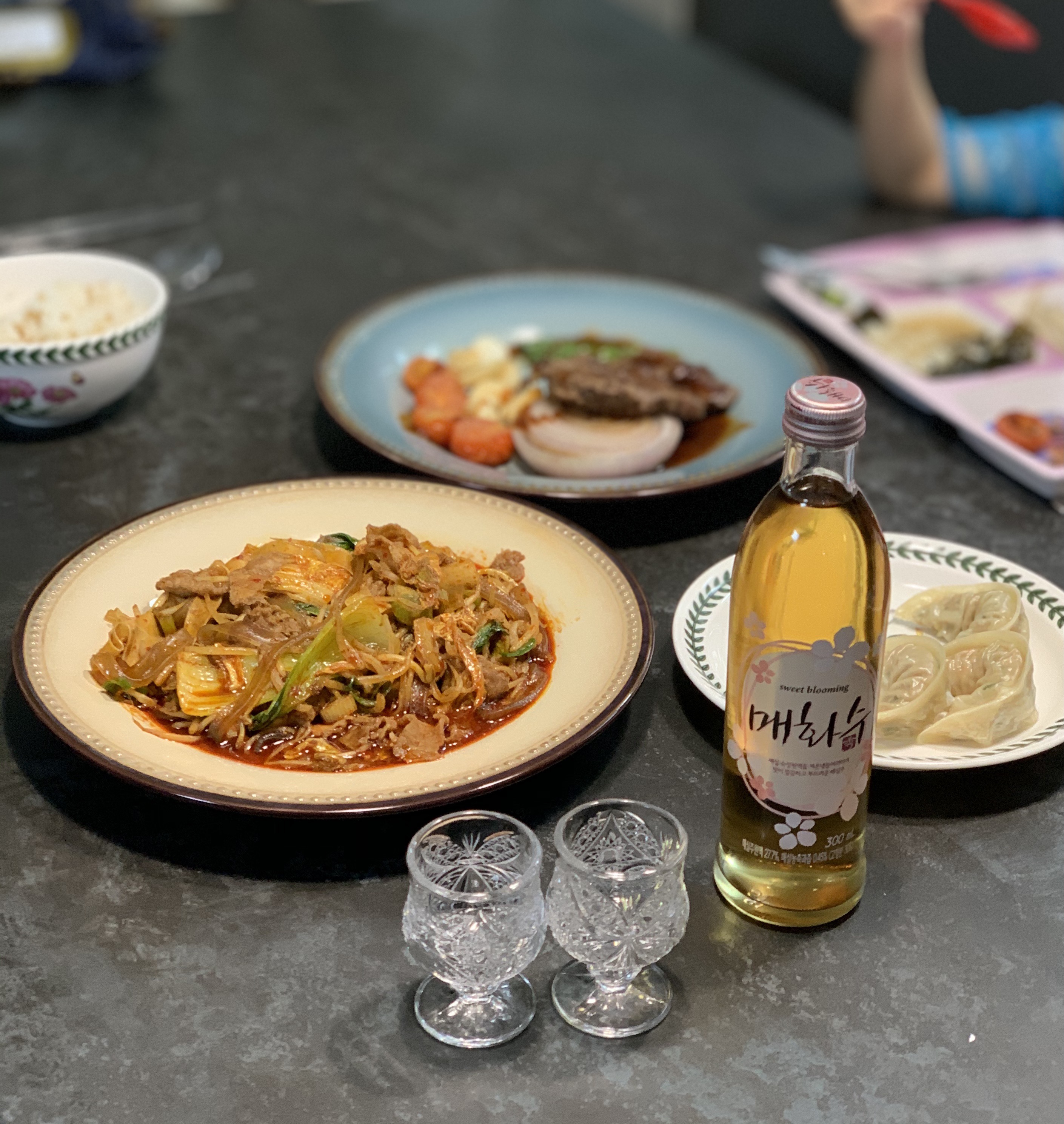 와인을 사러 갈 수 없어 편의점에 판매하는 매화수로 대체.