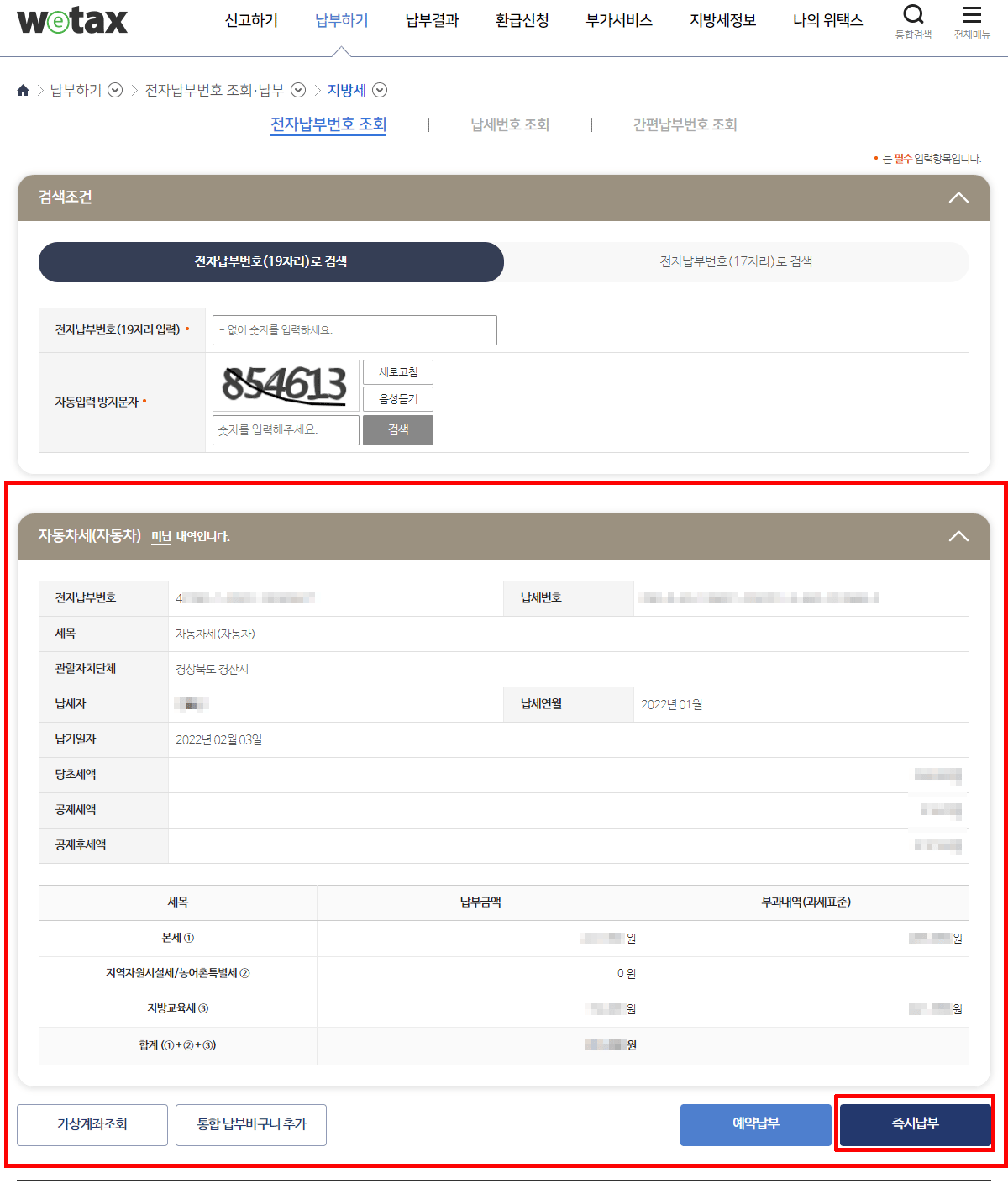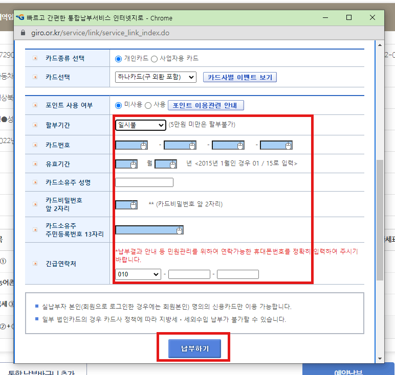 입력 후 납부하기 버튼을 눌러주면 완료!