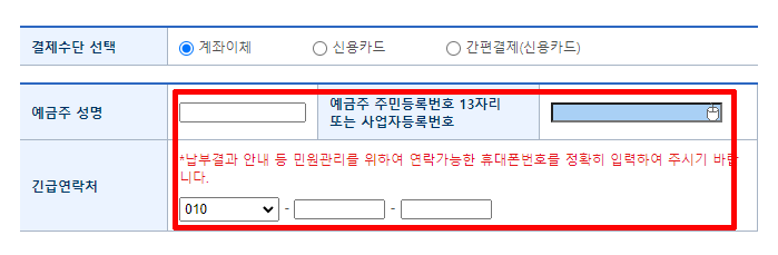 혹시 계좌이체를 원할경우,